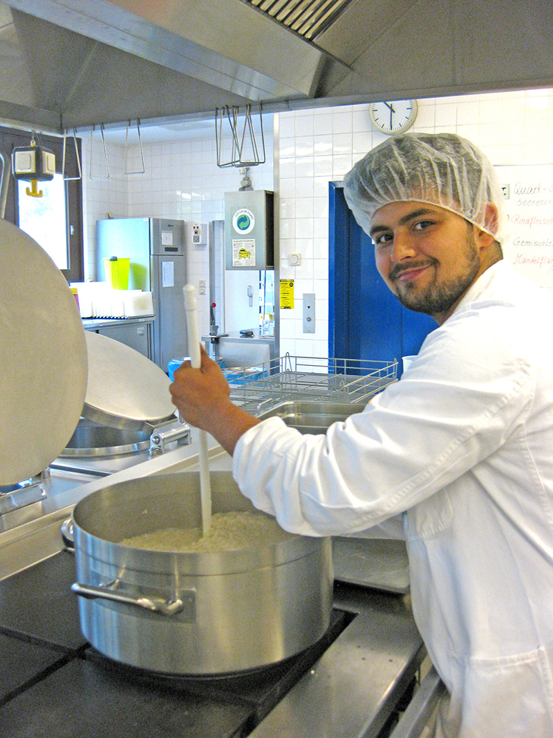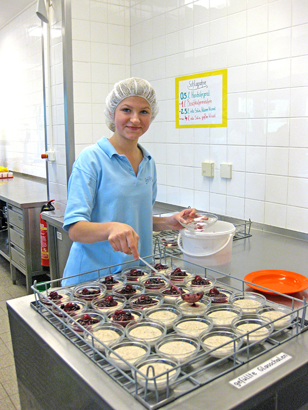 Fachpraktischer Schwerpunkt des Lehrgangs im Bereich Ernährung und Hauswirtschaft ist die Nahrungszubereitung. In der schuleigenen Mensa, in unserer Cafeteria und im Cateringprojekt wird unter betriebsnahen Praxisbedingungen gearbeitet und die Tätigkeit in einer Großküche erprobt.