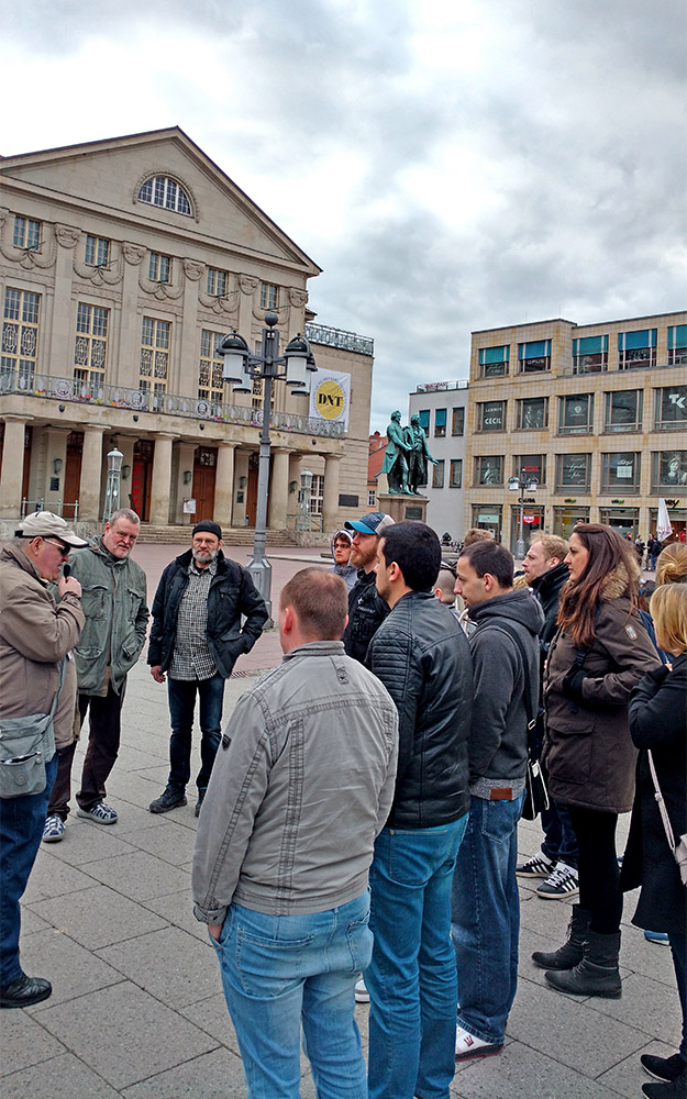 Gern informierten sich unsere zukünftigen Techniker bei einer Stadtführung in Weimar über Interessantes vom Klassizismus bis hin zu neuerer deutscher Geschichte.