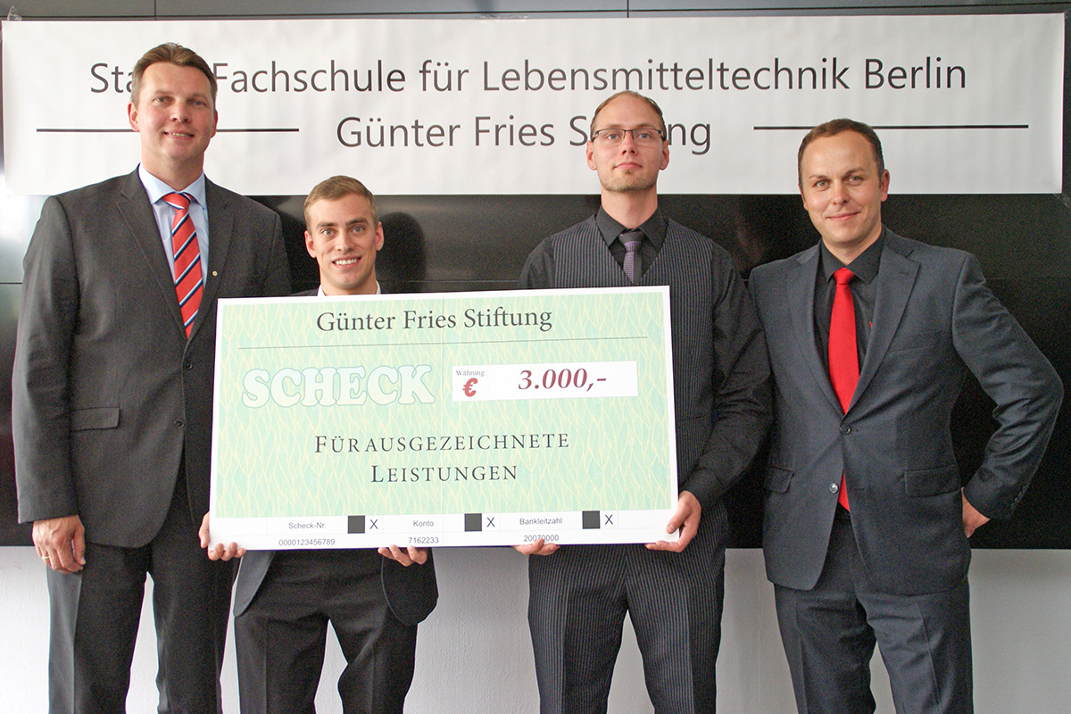 Ausgezeichnet wurden Clemens Furchner (FFF51), Christopher Kerst (FFT51) und Susanne Paschke (FBT51). Eine Prämie der Günter Fries Stiftung erhielt Daniel Koenig für seine Technikerarbeit „Greeny - Brotaufstrich aus Erbsen, Jalapeno und Grüntee-Extrakt“ und Christopher Kerst für „Ritjes - Zartes Rindfleisch in Öl“.