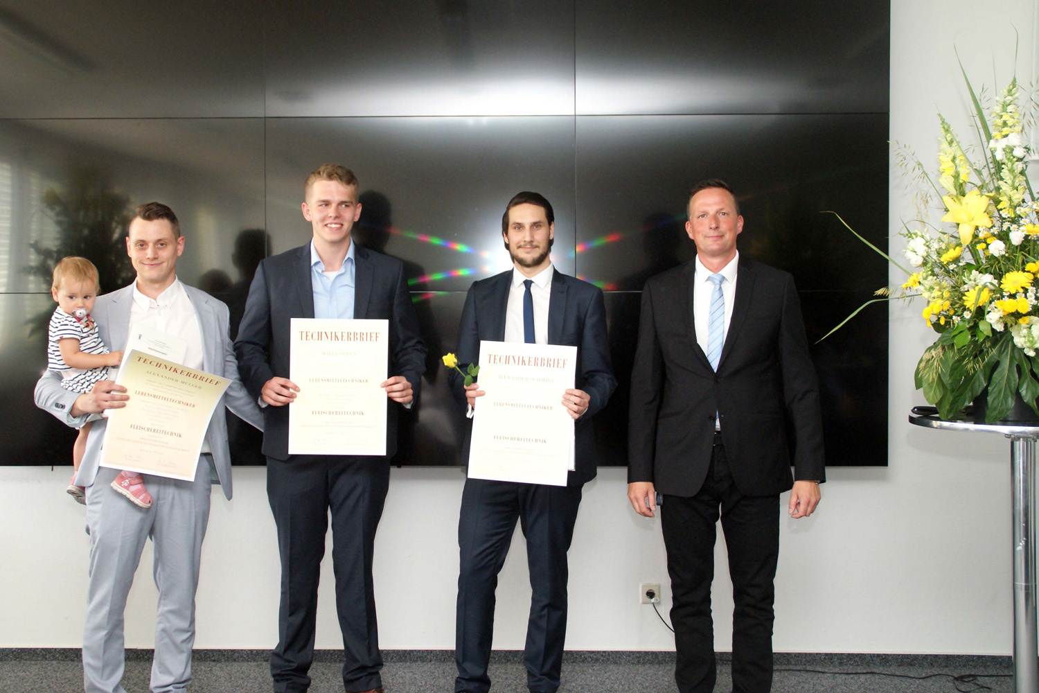 Die besten Technikerarbeiten in der Bäckereitechnik wurden von Herrn Stuhlreyer und Herrn Linster mit Unterstützung der Vereinigung der Backbranche (vdb) prämiert.
