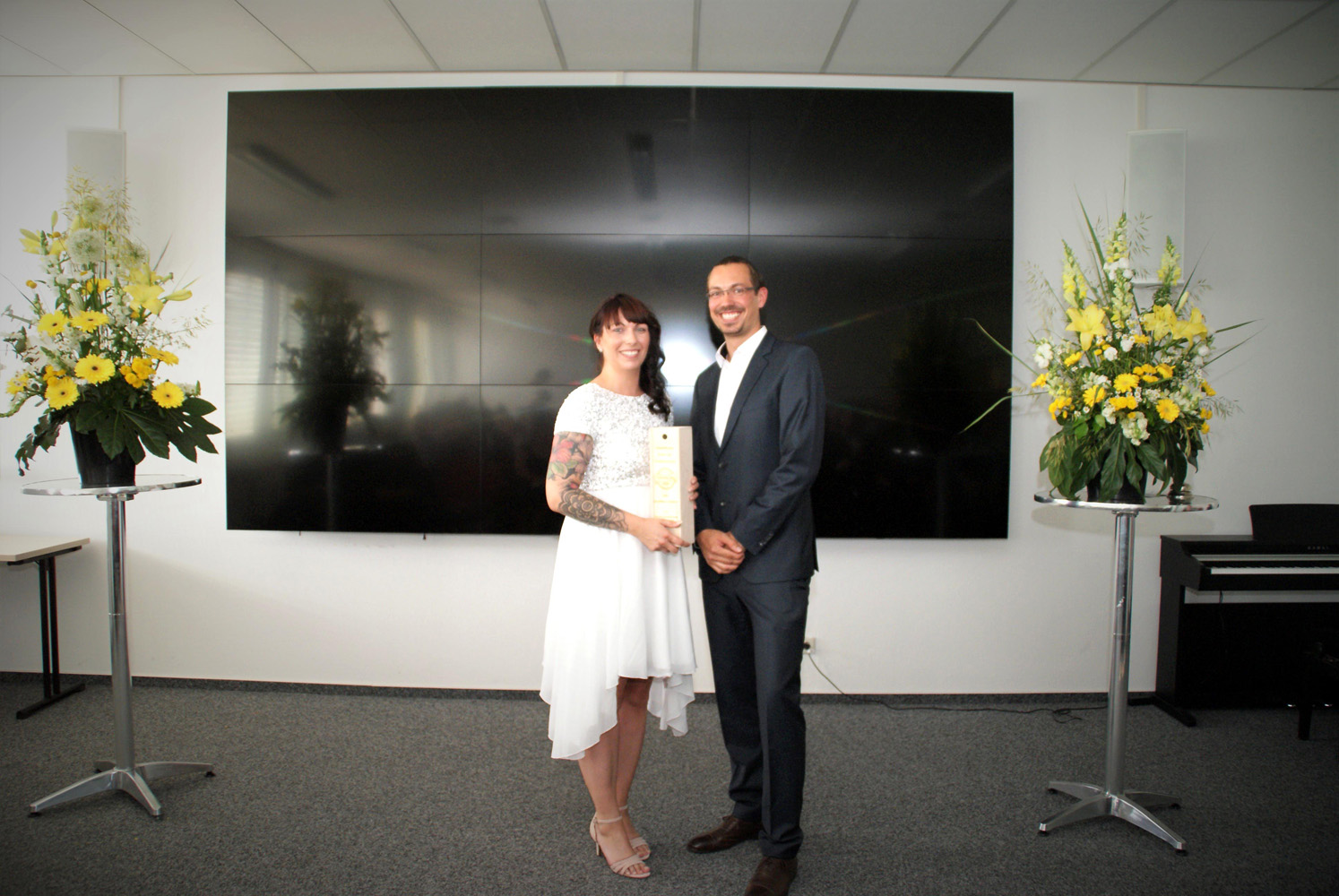 Auszeichnung von Willy Oppen und Patrick Schmidt durch Herrn Richter und Herrn Bischoff von der ViskoTeepak-Stiftung Günter Fries