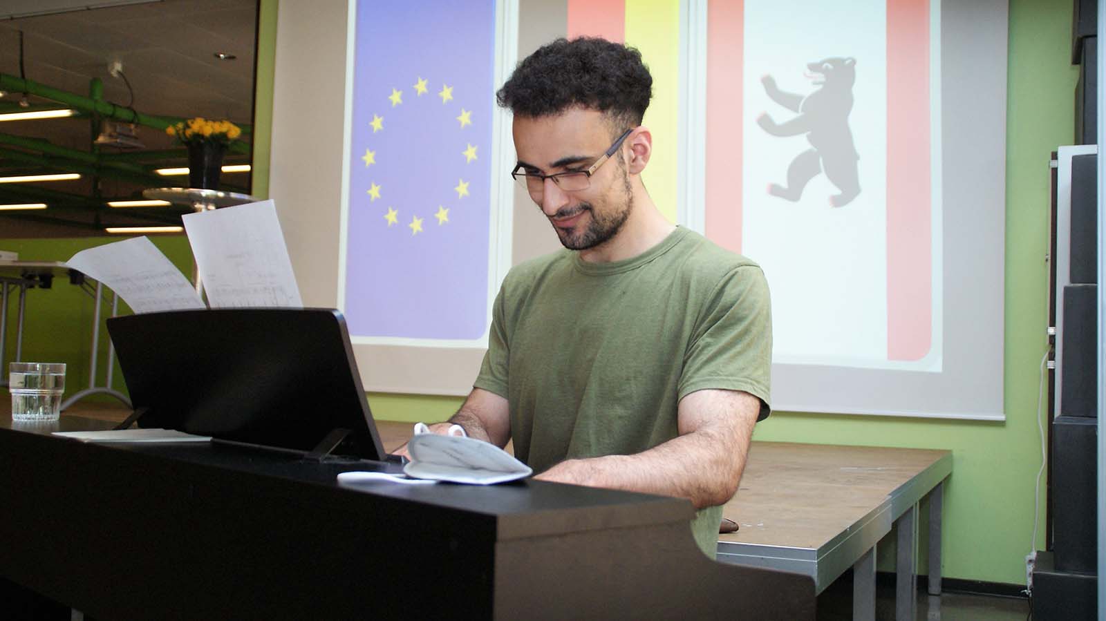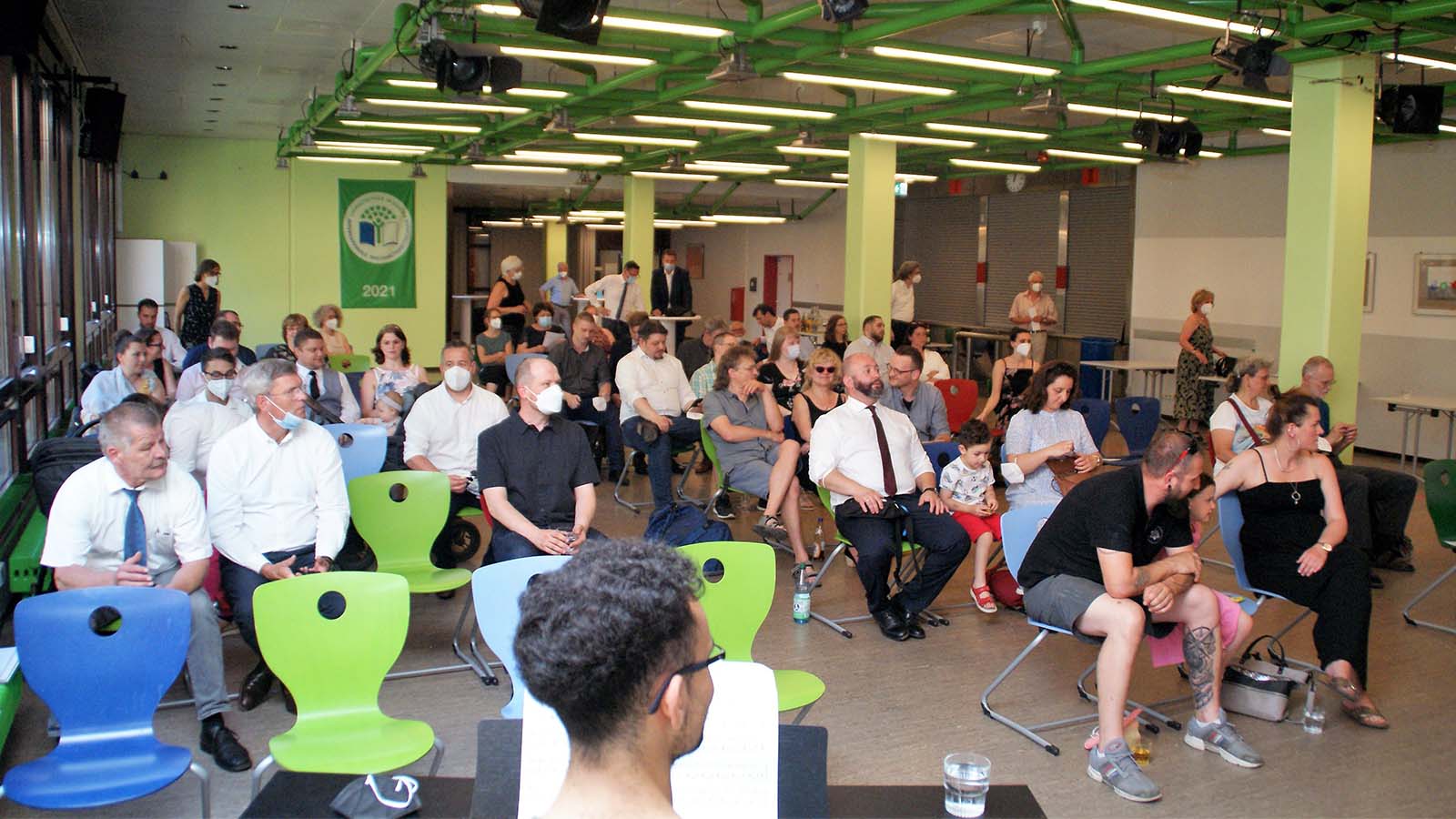 Marcel Behrendt ließ namens der Absolventen die beiden Jahre des Studiums Revue passieren und dankte den Lehrerinnen, Lehrern, Dozentinnen und Dozenten für ihr Engagement in einer Zeit voller Herausforderungen in den verschiedenen Bereichen der Weiterbildung. Ein musikalisches Intermezzo von Moustafa Khalife, Abiturient des Beruflichen Gymnasiums, unterstrich den feierlichen Charakter.