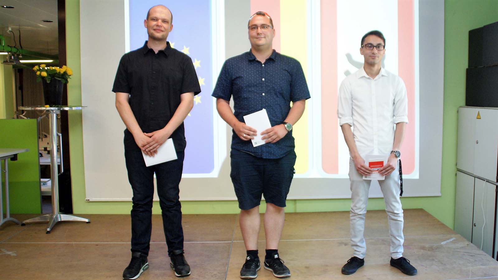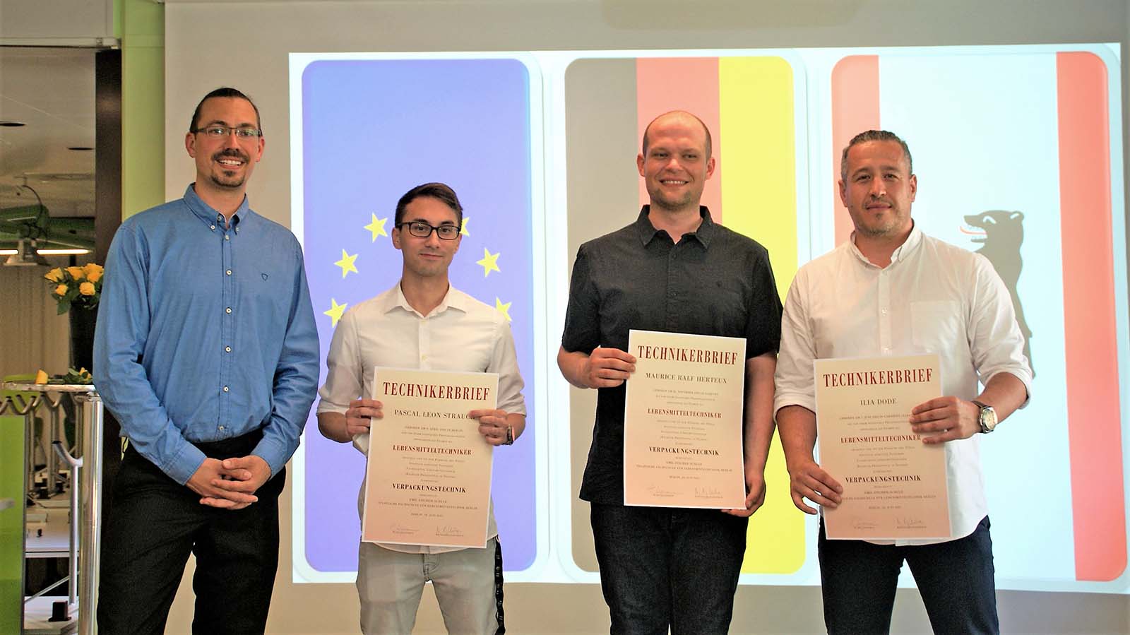 Auszeichnung der Jahrgangsbesten: Maurice Herteux (Verpackungstechnik), Johannes Kludt (Fertiggerichte und Feinkost), Pascal Strauch (Verpackungstechnik)