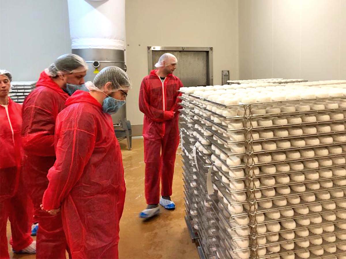 Vierte Station der Reise war die Käserei Altenburger Land an der thüringischen Grenze zu Sachsen. Seit über 1897 wird hier nach traditioneller Art Milch von heimischen Kühen und Ziegen zu Käse und Rahmaufstrichen veredelt. Unsere Studierenden durften die hochwertigen Erzeugnisse aller hauseigenen Marken, wie auch Rotkäppchen und Rügener Badejunge in einer abschließenden Verkostung beurteilen.