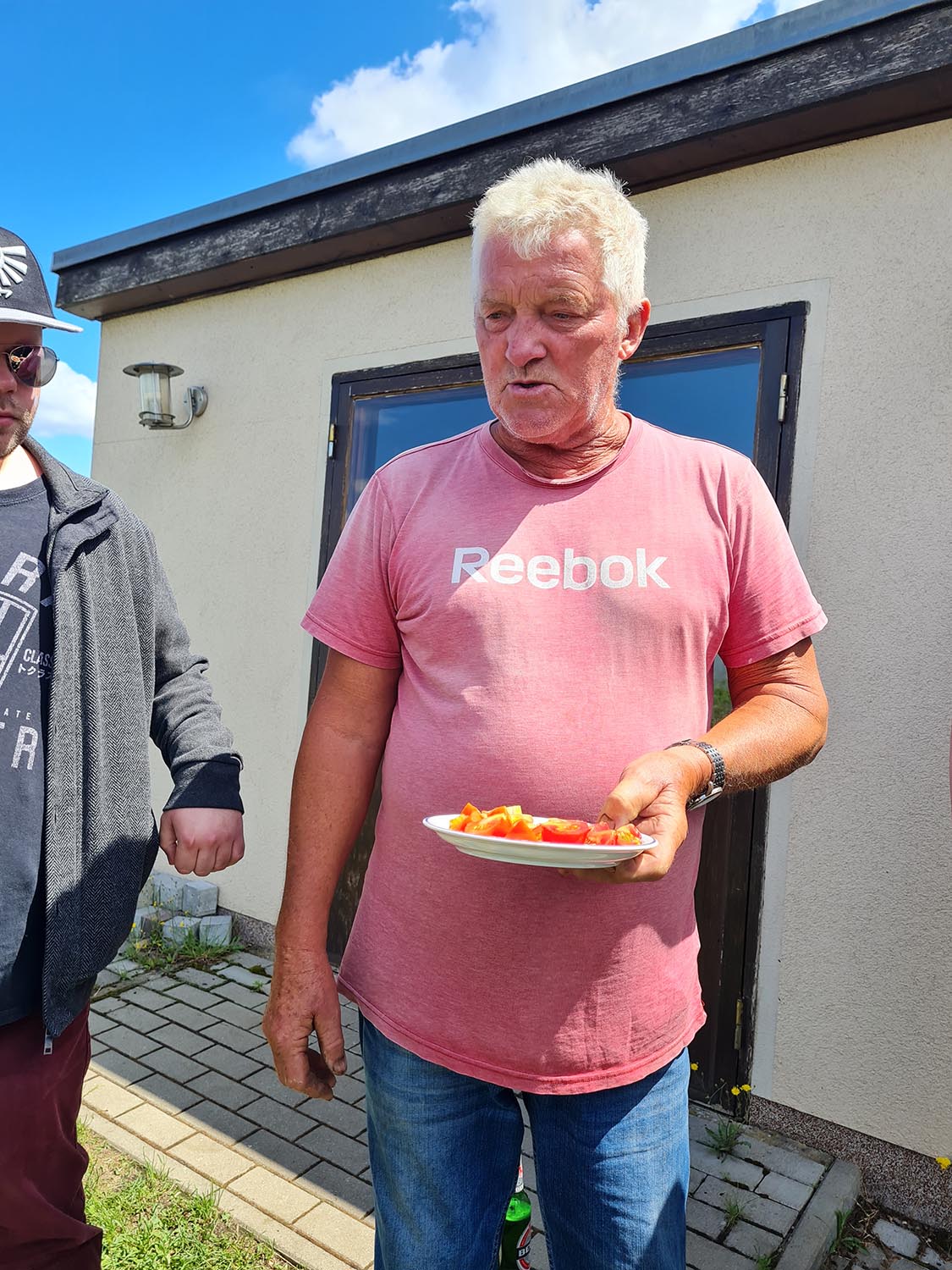 Highlight zwei an diesem Exkursionstag war ein Besuch bei Gärtnermeister Siegeris, dem „Tomatenmucker aus Werder“ (Hallo Nachbarn!; Video in der ARD-Mediathek). Horst Siegeris ist ein Unikat der Landwirtschaft mit einer sehr beeindruckenden Persönlichkeit und hat uns sofort in seinen Bann gezogen. Er gab uns die Möglichkeit, einen Einblick in seine nachhaltige und regionale Tomatenzucht zu bekommen und hat uns mit seiner Liebe zur Tomate angesteckt. Neben seinem beeindruckenden gärtnerischen Wissen vermittelte er uns auch viel seiner Lebenseinstellung und gab uns ein paar Tipps für unser kommendes Leben mit, denn „Erfolg ist erlernbar“ und „wenn es einfach wäre, könnte es ja jeder“ sind seine Lebensmottos und diese strahlt er mir vollem Selbstbewusstsein aus.