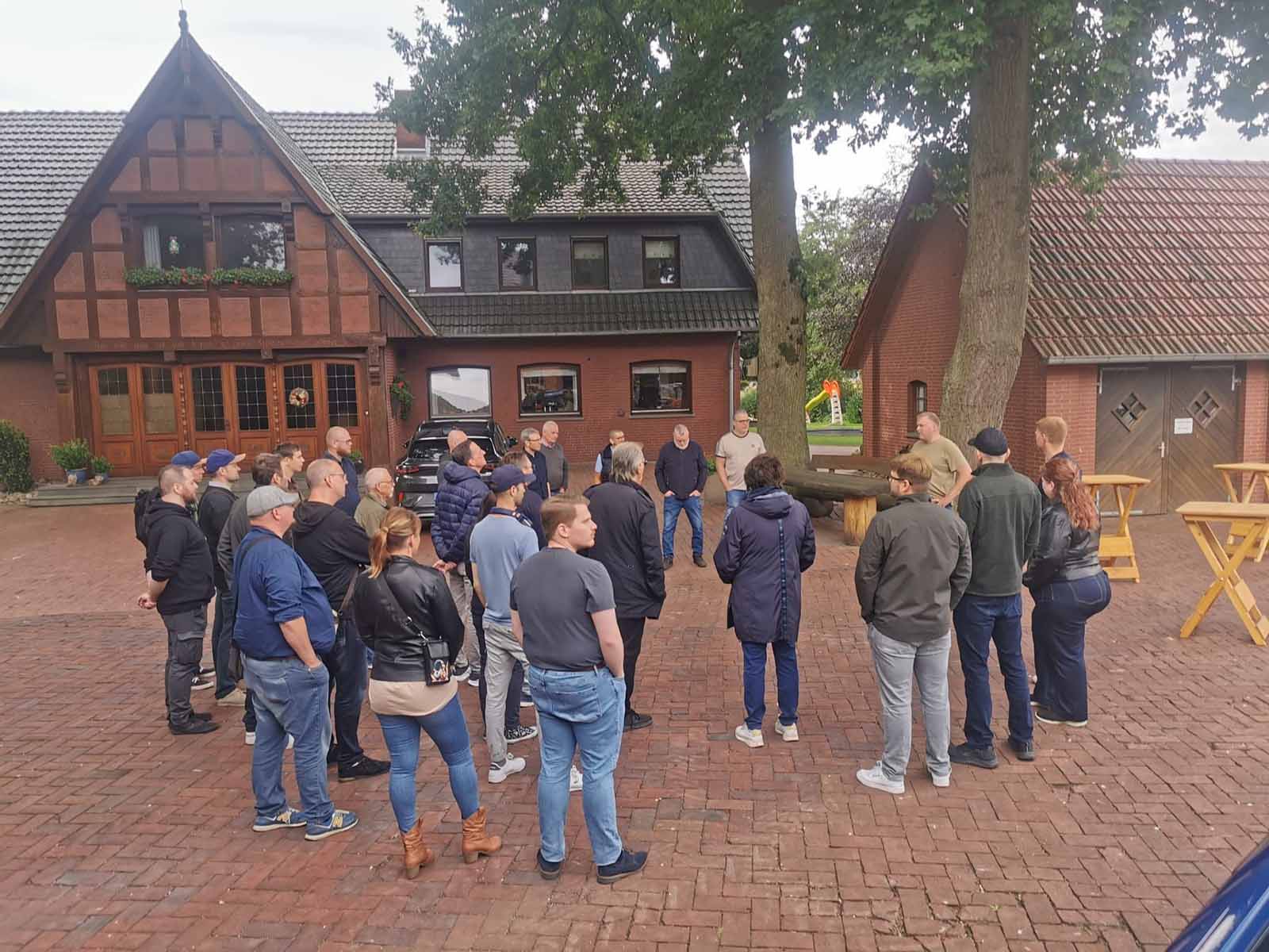 Samstagmorgen ging es erst zur Betriebsbesichtigung in das nahe gelegene Damme zum Hof der Familie Kleine-Piening. An frischer Luft wurde den Teilnehmern ein moderner Betrieb mit hauptsächlich Bullen- und Schweinemast vorgestellt.