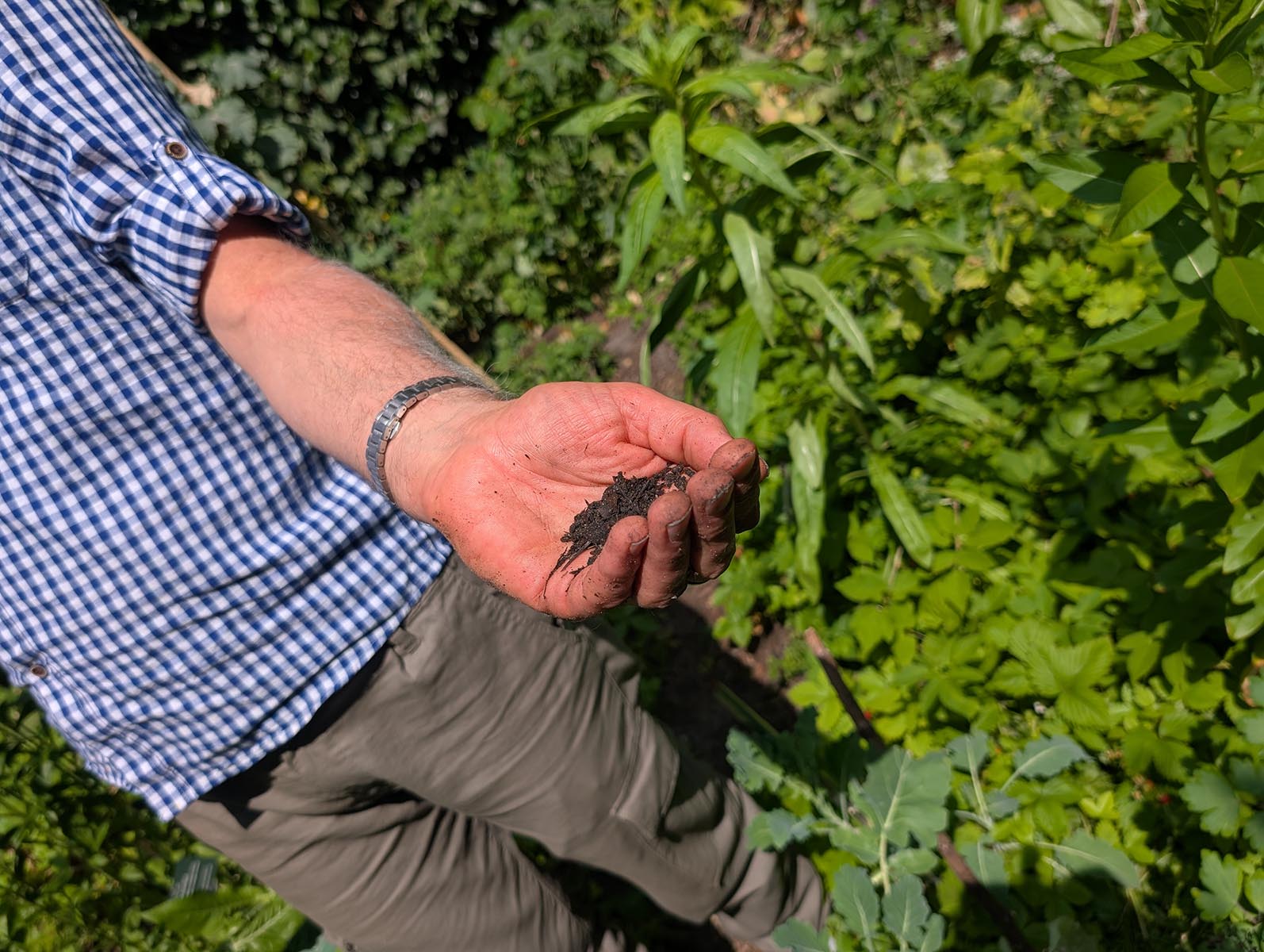 Um nicht nur theoretisches, sondern auch praktisches Wissen zu vermitteln, haben wir einen Besuch des Schulgartens eingeplant. Hier sollten die Lernenden eine Bodenprobe nehmen, sie untersuchen und auf ihre Qualität bewerten. Interessant war zu sehen, wie sich die Bodenqualität zwischen April und Juni sichtbar verbessert hatte, da wetterbedingt erst nach dem 4. April 2025 natürlicher Dünger im Schulgarten verteilt werden konnte. Zudem zeigte die Bewertung einen Zuwachs an Kleinstlebewesen.