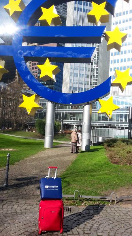 Daher reiste Frau Nawroth, Fachleiterin Wirtschaftswissenschaft der Emil-Fischer-Schule, mit rotem Koffer und entspannter Lernbereitschaft während der Osterferien in die deutsche Finanzmetropole am Main, um von Bankpraktikern u. a. aus dem Hause der Deutschen Bundesbank und des Bundeskartellamtes sowie von Professoren der renommierten Frankfurt School of Finance & Management aktuelle Erkenntnisse, Erfahrungen und Einschätzungen aus der Finanzwelt vermittelt zu bekommen.