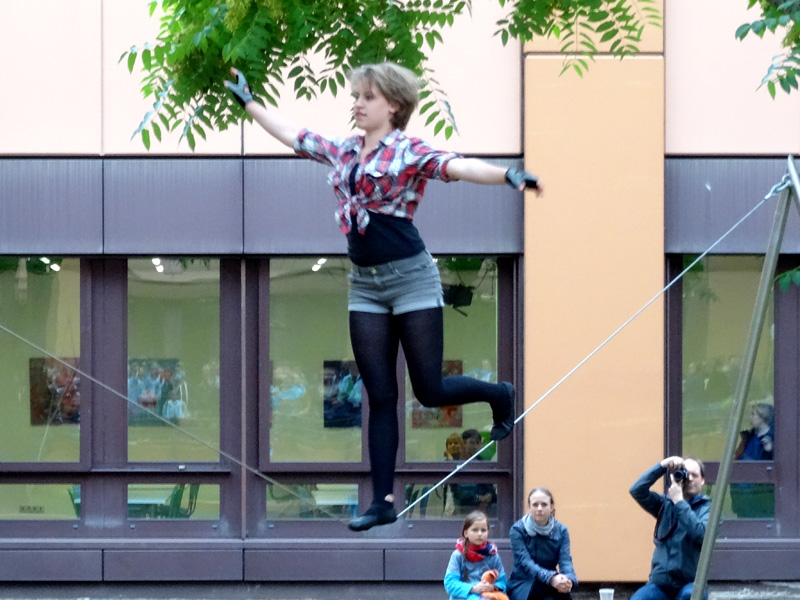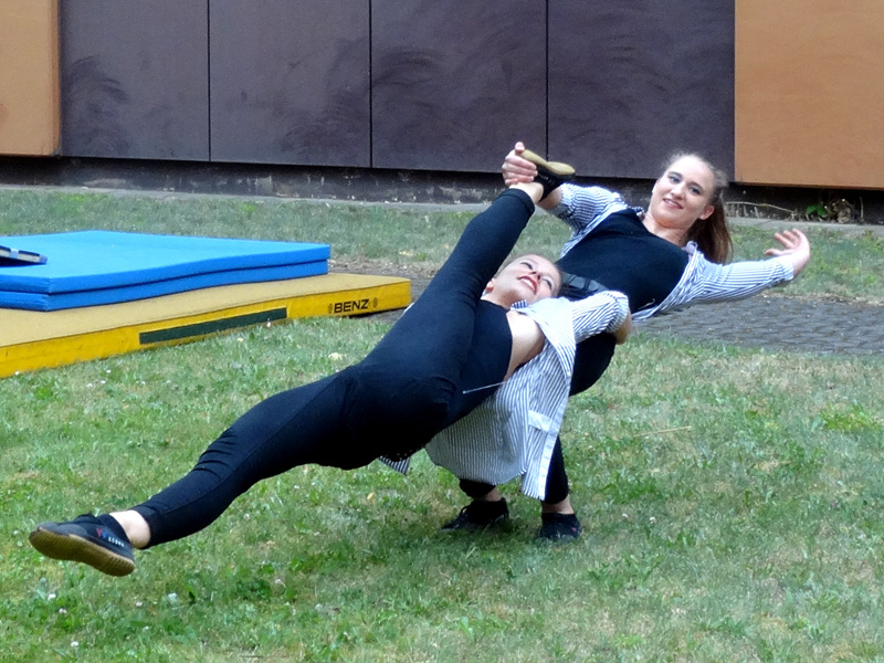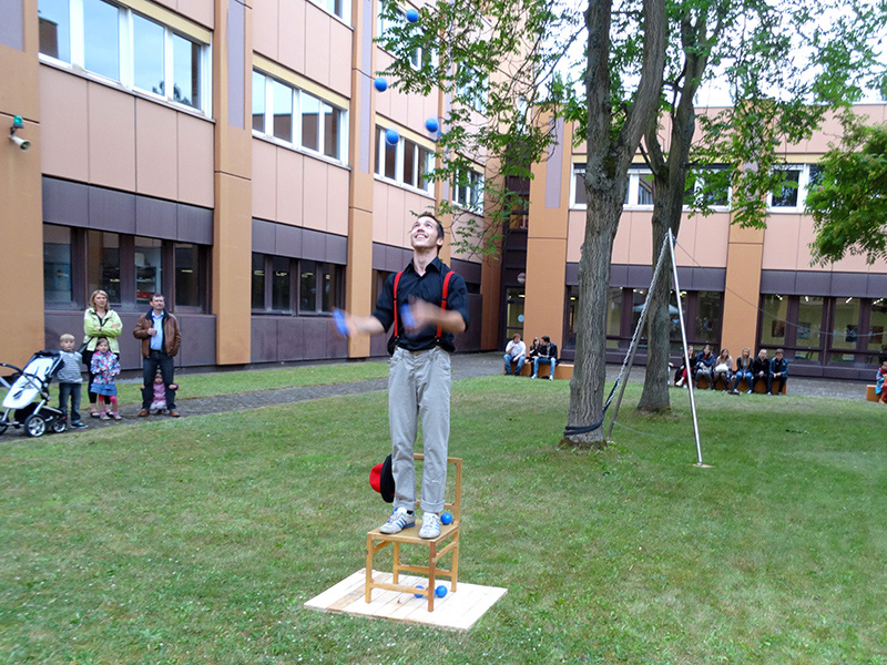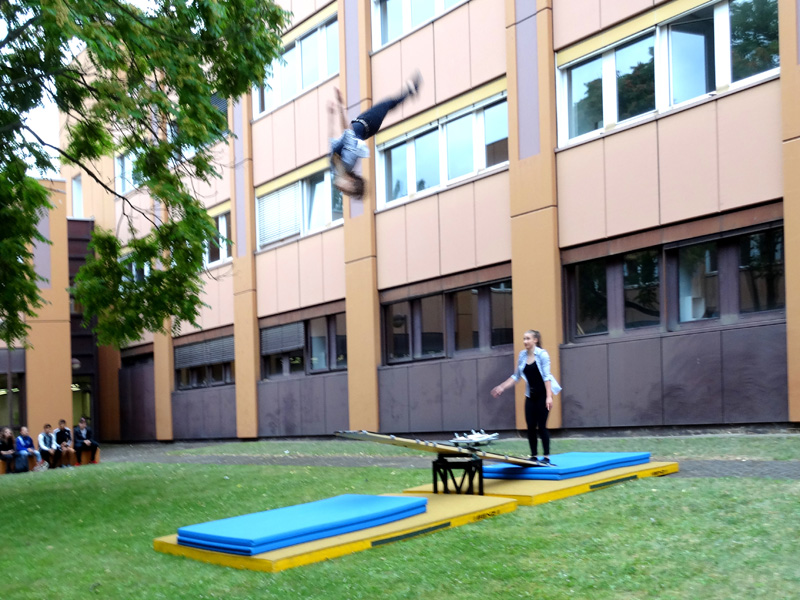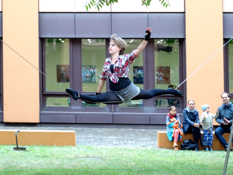 Schüler der Artistenschule Berlin auf dem Schlappseil, bei der Ball-Jonglage und auf dem Schleuderbrett