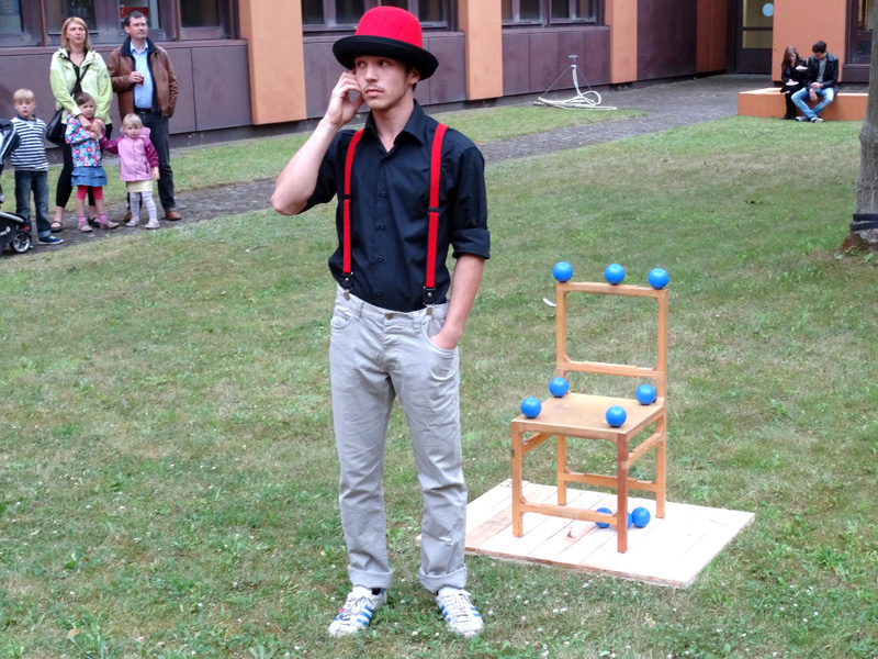 Als Einheizer ließ DJ Klangfinger die Scheiben rotieren, während sich die Schüler- und Lehrer-Kollegen von der Staatlichen Schule für Artistik Berlin aufwärmten. Die angehenden Artisten zeigten anschließend Akrobatik und Jonglage auf hohem Niveau und erhielten viel Applaus für ihre Darbietungen auf dem Schlappseil, bei der Ball-Jonglage oder auf dem Schleuderbrett.