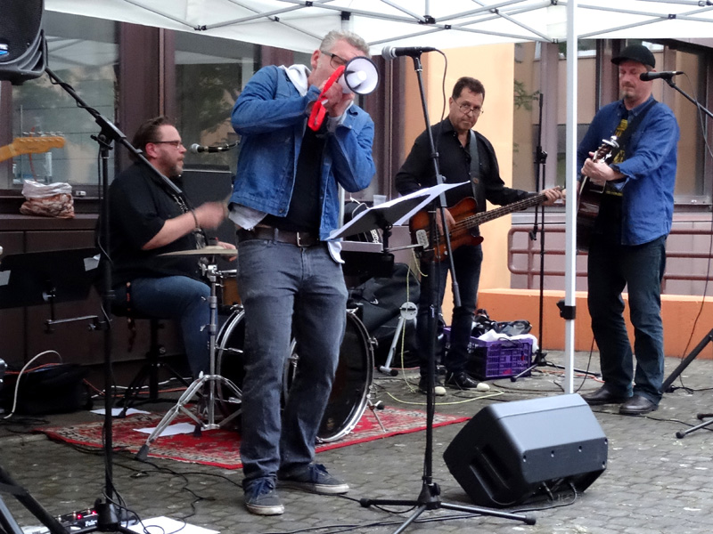 Komplettiert durch Gitarren, Bass und einen Shouter, der gelegentlich auch mal zum Megaphon griff, präsentierte die routinierte Band vor allem Rock- und Pop-Klassiker und ließ die Scheiben klirren. Neue Fans und Groupies konnten die Lolitaz an diesem Abend schnell anwerben, die treue Anhängerschaft war ohnehin begeistert...