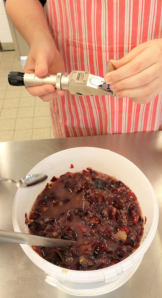 Mit dem Refraktometer wird der Zuckergehalt der Trauben bestimmt.
