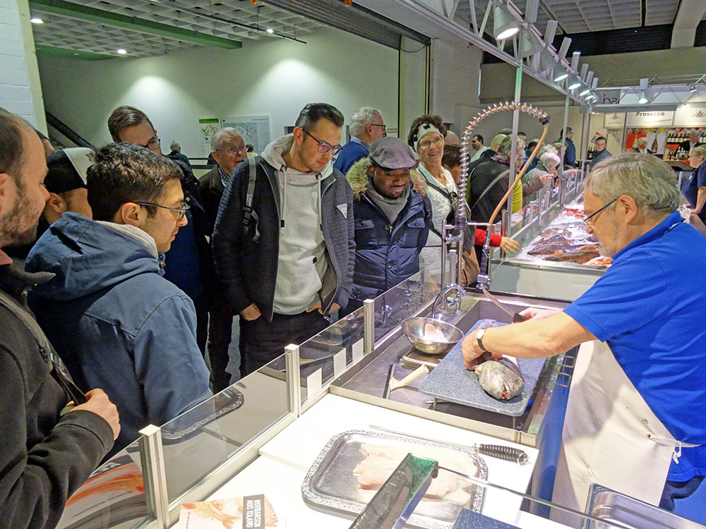 Wie im Vorjahr bot das Fischinformationszentrum einen sehr sehenswerten und informativen Stand. Ein Experte demonstrierte unseren Feinköstlern, wie ein Steinbeißer fachgerecht filetiert wird.