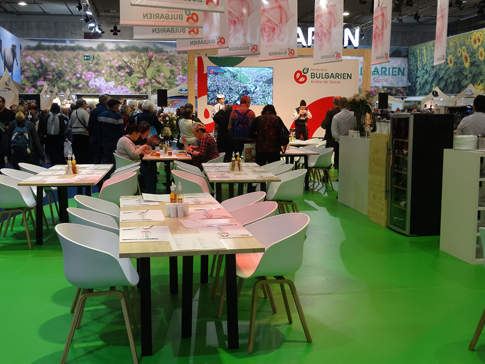 Partnerland der Grünen Woche war in diesem Jahr Bulgarien. Neben den ausgestellten Honig- und Jogurtspezialitäten, Wein, Likör und Tee lud ein Restaurant zum Verzehr landestypischer Gerichte ein, doch die Lautstärke der kulturellen Darbietung gleich nebenan vergrämte etliche Gäste. Den baulich aufwändigsten Messestand bot Katar, allerdings wurden dort nur Mineralwasser und Chips in Alutüten präsentiert.