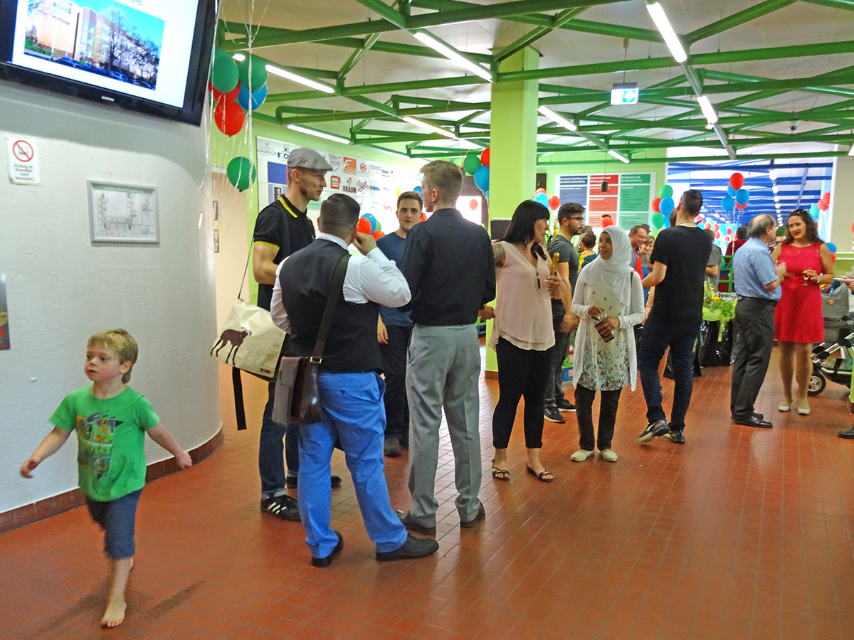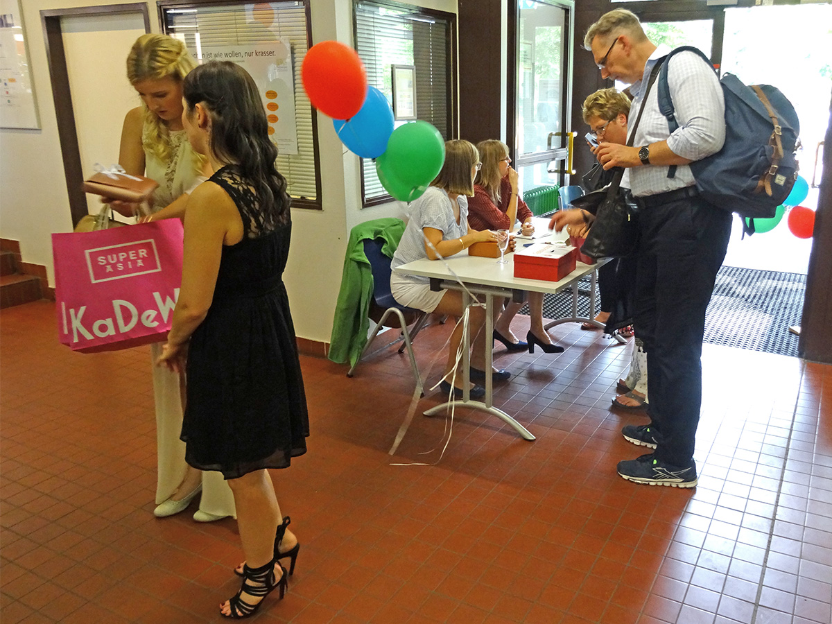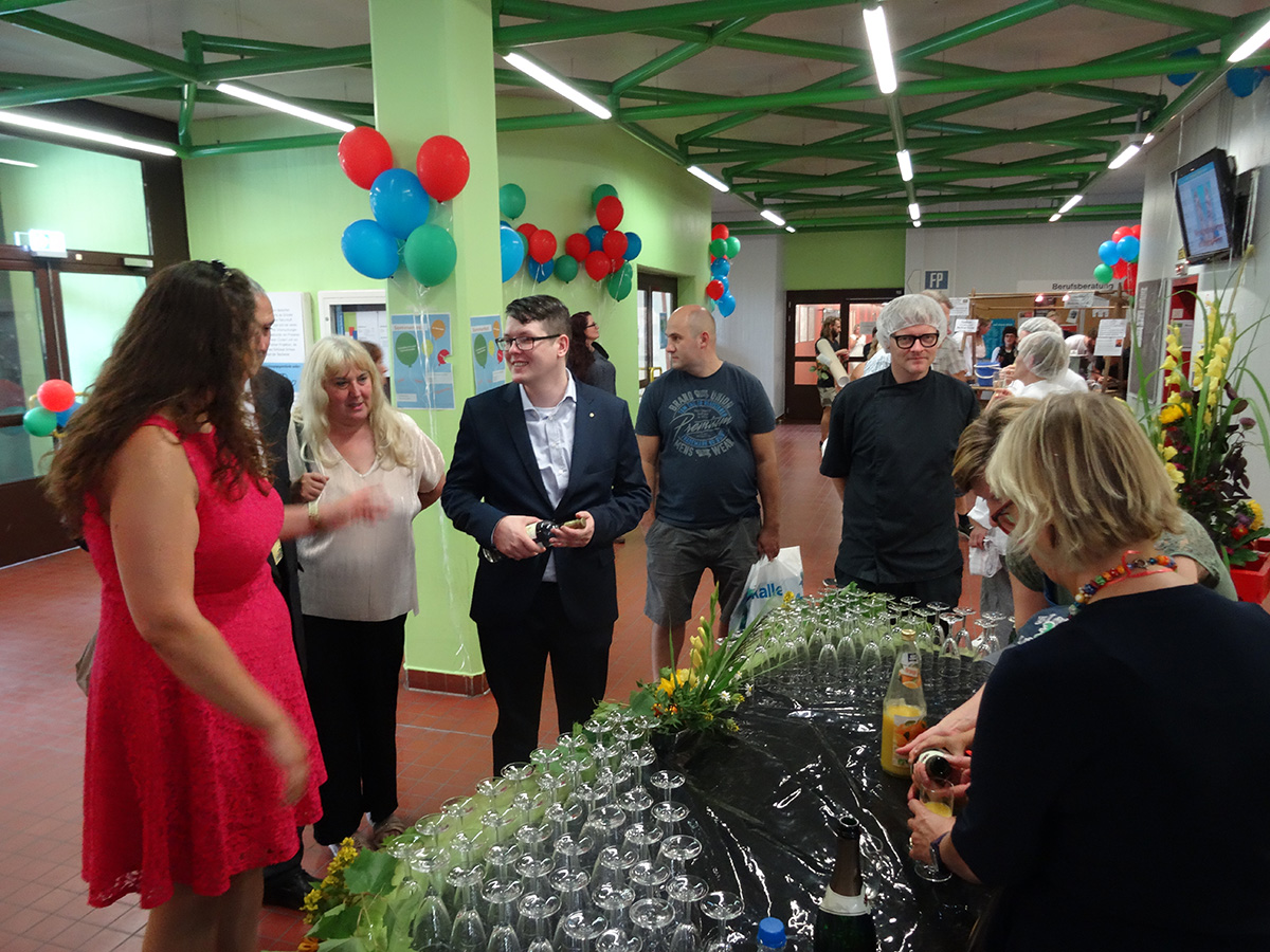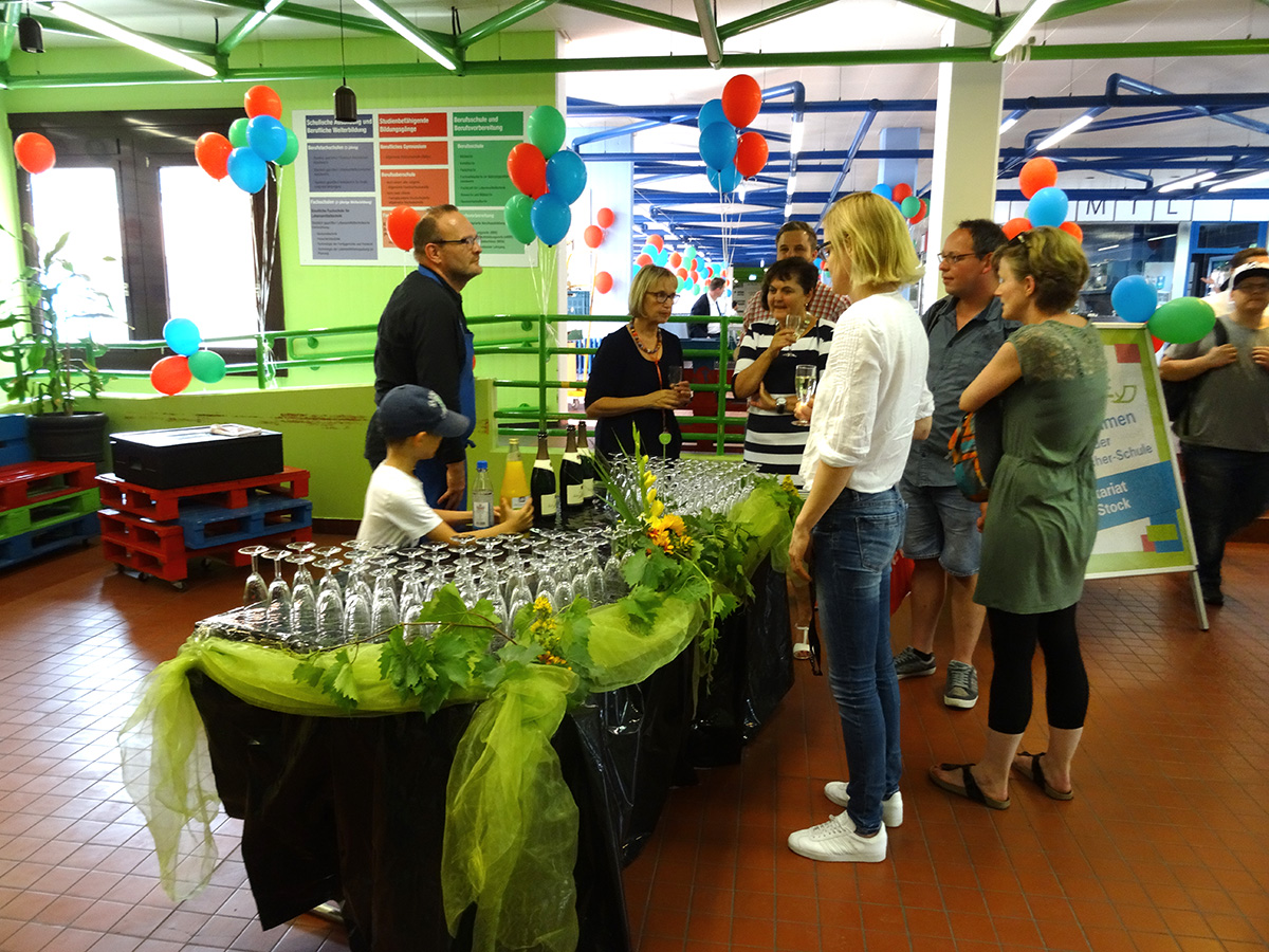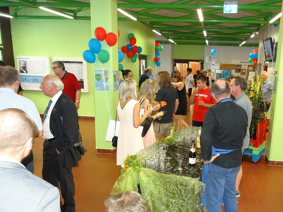 Nach der Verabschiedung der Technikerklassen begannen die Festlichkeiten mit einem Sektempfang. Erfreulich war auch diesmal, dass wir neben Angehörigen und Freunden viele Ehemalige – Absolventen und Lehrer – begrüßen konnten.