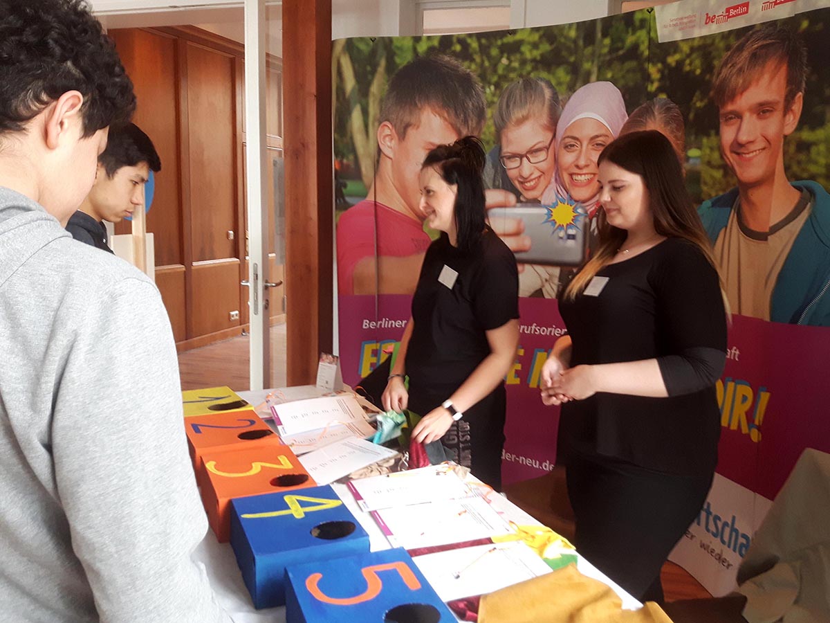 Die Hauswirtschaftsauszubildenden hatten sichtlich Spaß daran, ihre Kommunikationsfähigkeiten zu trainieren. Eine gelungene Ausbildungsinitiative, durchgeführt von der Agentur elswyer+hoffmann im Auftrag der Senatsverwaltung für Integration, Arbeit und Soziales.