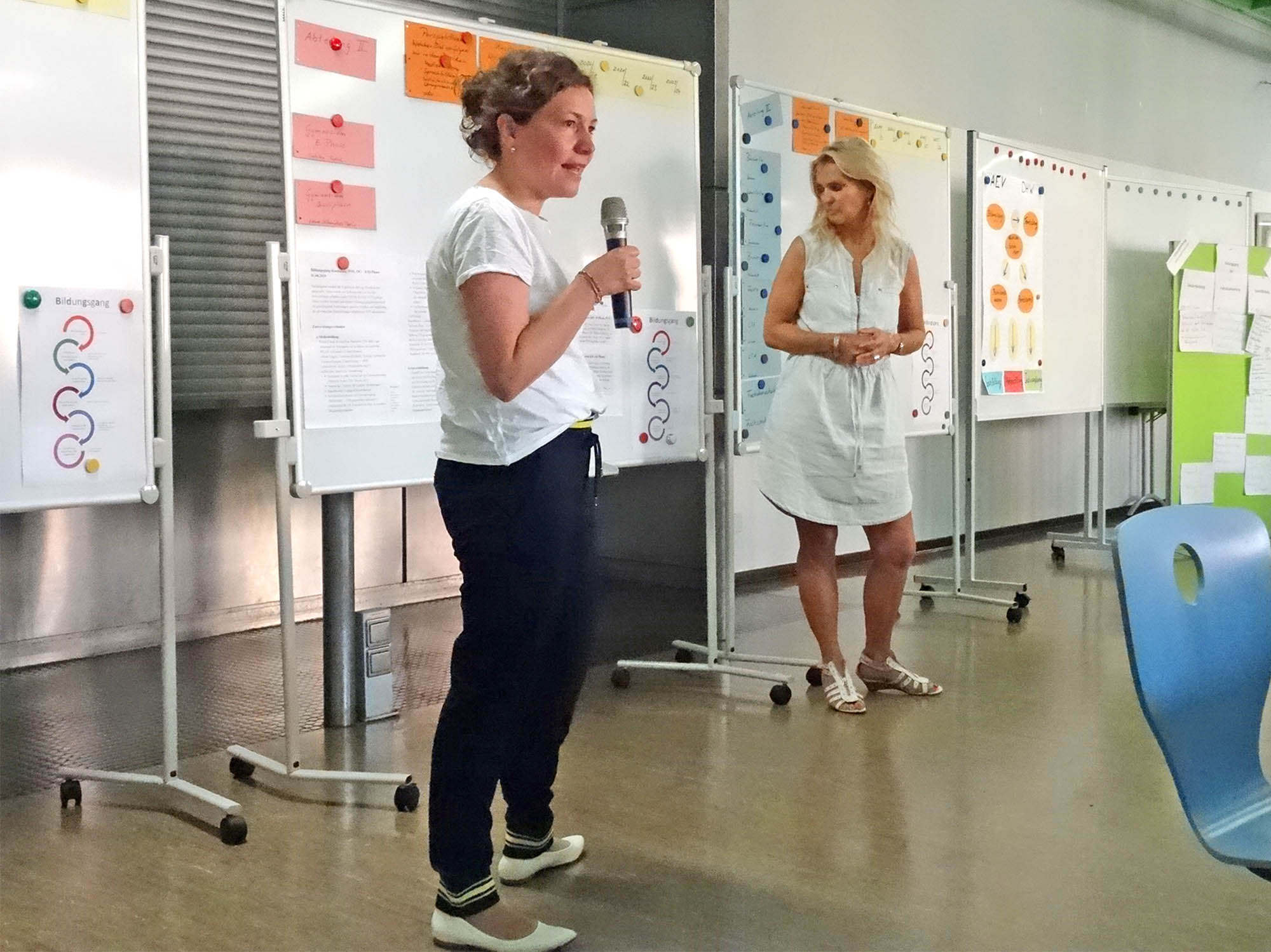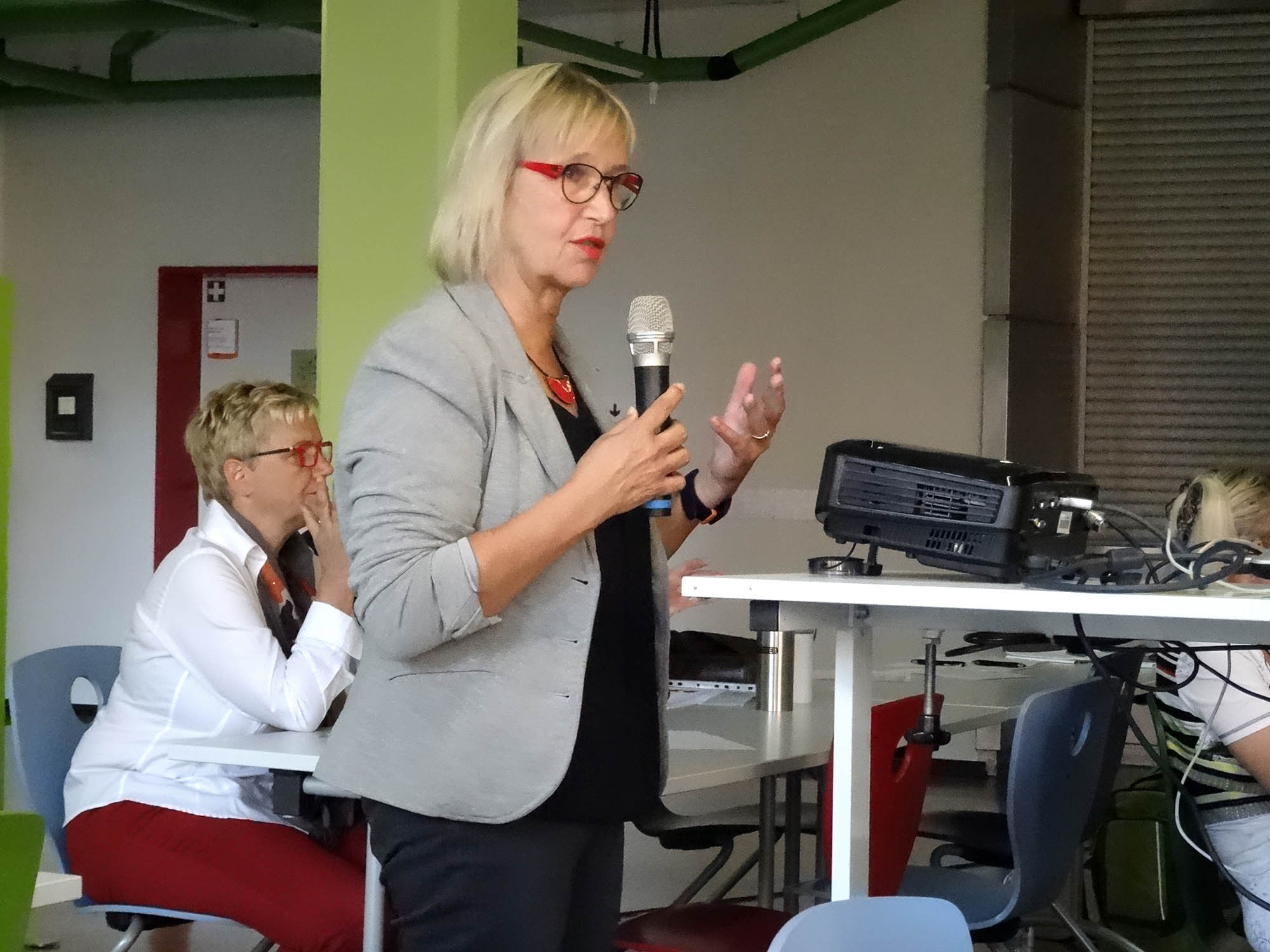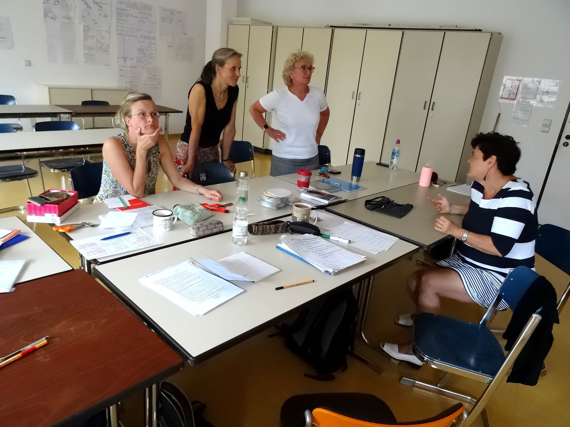 Nach einem Frühstücksbuffet gab eine Dienstbesprechung einen Überblick über das Arbeitsprogramm der kommenden Tage. Die neuen Kolleg(inn)en wurden begrüßt, andere in Ruhestand oder Elternzeit verabschiedet. Frau Dr. Schwalb, die sich schon auf einer vorangegangenen Gesamtkonferenz vorgestellt hatte, leitet künftig die Abteilung 2 mit dem Beruflichen Gymnasium.