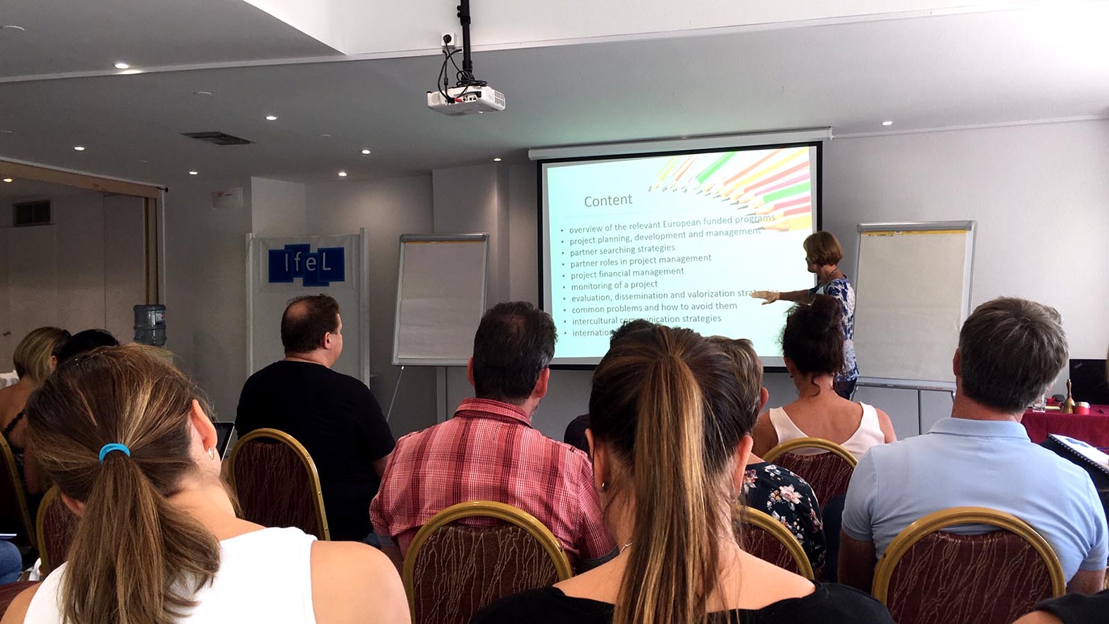 In der Fortbildung wurde ausführlich behandelt, wie man als Schule Fördermittel beantragt, um z. B. ein job shadowing in anderen EU-Ländern durchzuführen und zu erfahren, wie dort z. B. Fremdsprachen wie Englisch, Französisch und Spanisch unterrichtet werden. Neben den Tagen im Seminar wurde auch kulturell einiges geboten, wie z. B. der Besuch in Knossos und im archäologischen Museum von Heraklion.