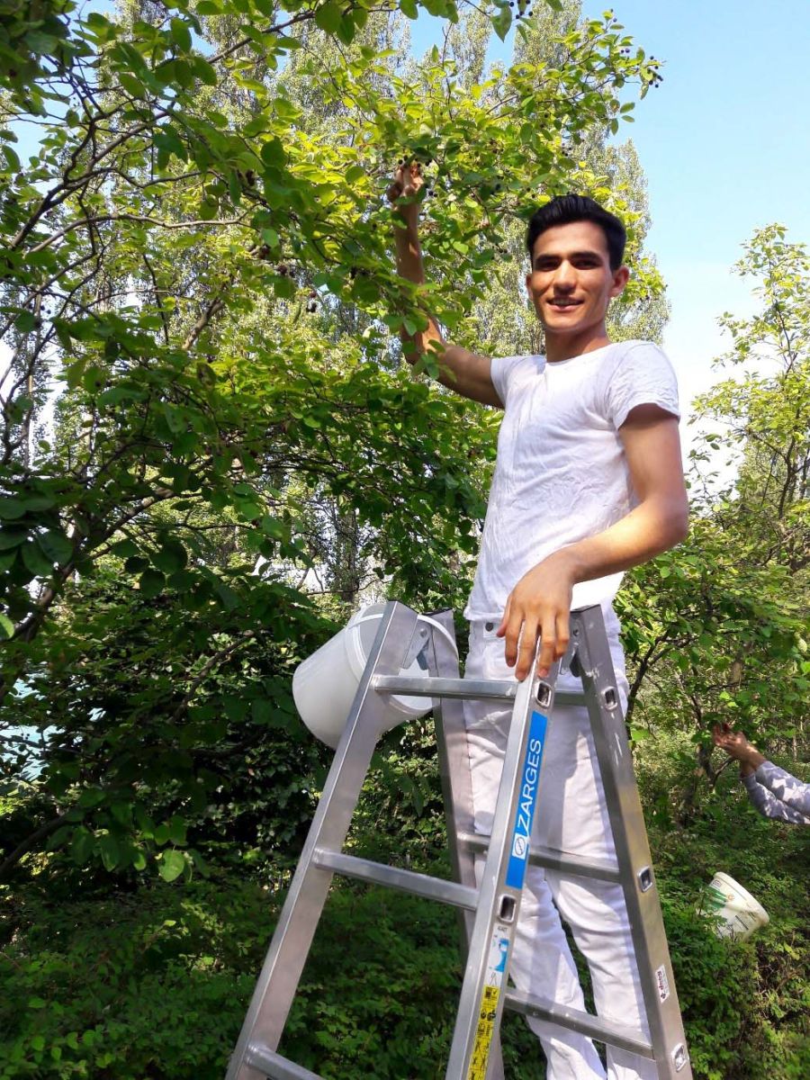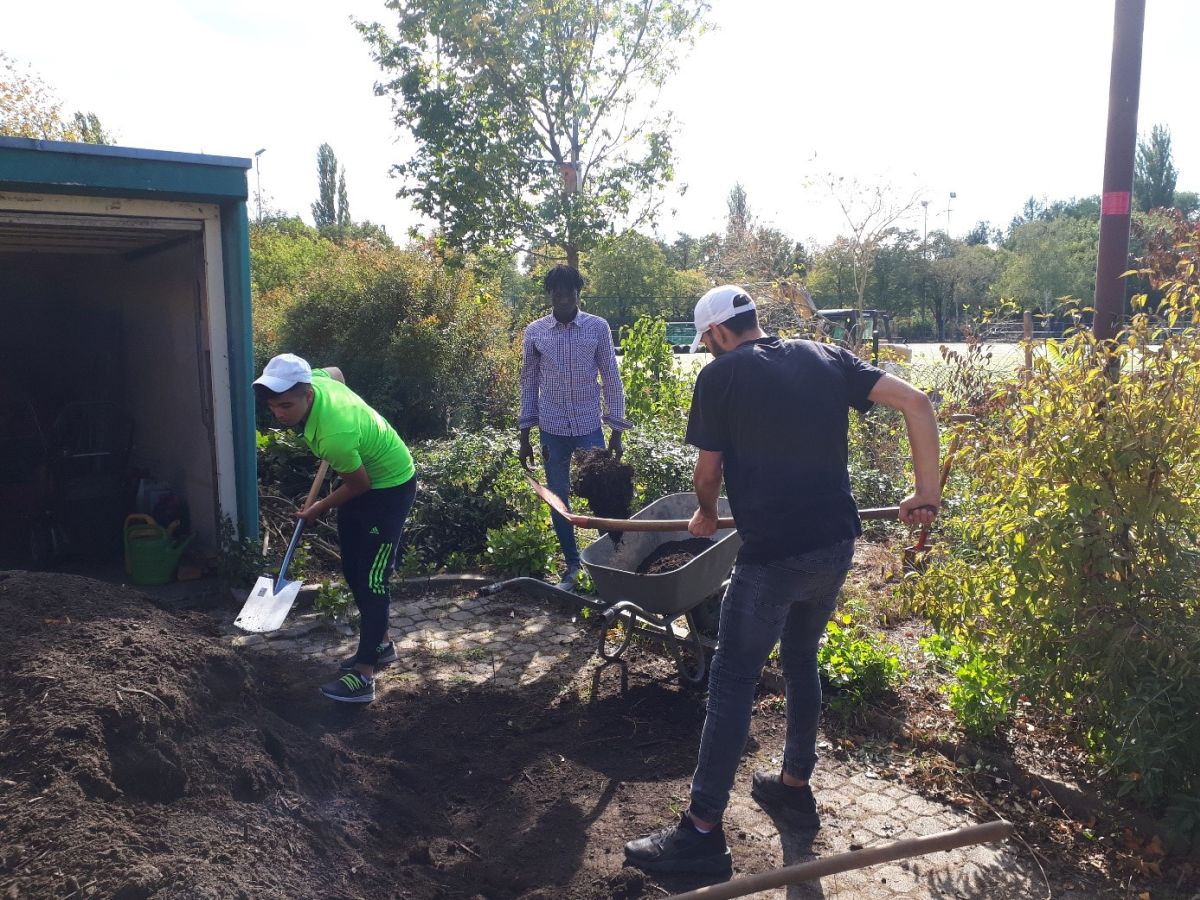 Das Gelände, das sich heute als fruchtbarer Garten präsentiert, war über lange Zeit in Vergessenheit geraten. Im Winter 2016 wurde damit begonnen, die verwilderte Fläche aufzuräumen und zu säubern und im Frühjahr erfolgten erste Anpflanzungen pflegeleichter Gemüsesorten. Die Schülerinnen und Schüler wurden von Anfang an einbezogen. Herr Niemeyer, unser technischer Leiter, holte sich tatkräftige Unterstützung aus den berufsvorbereitenden Klassen und den Willkommensklassen.