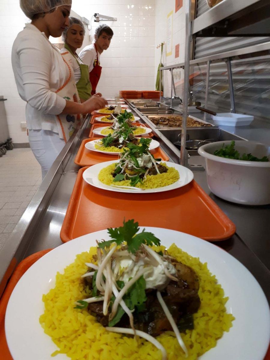 Die Fotos wurden zu unterschiedlichen Zeitpunkten aufgenommen und zeigen die Anlage von Beeten, die Ernte und die Weiterverarbeitung der Produkte in Mensa und Cafeteria.