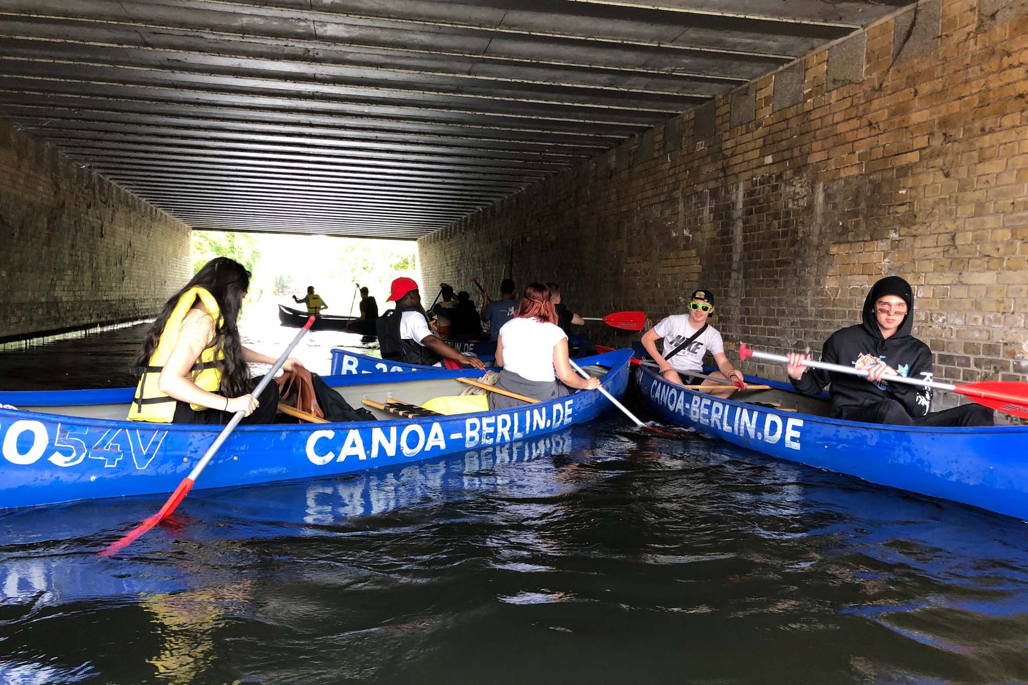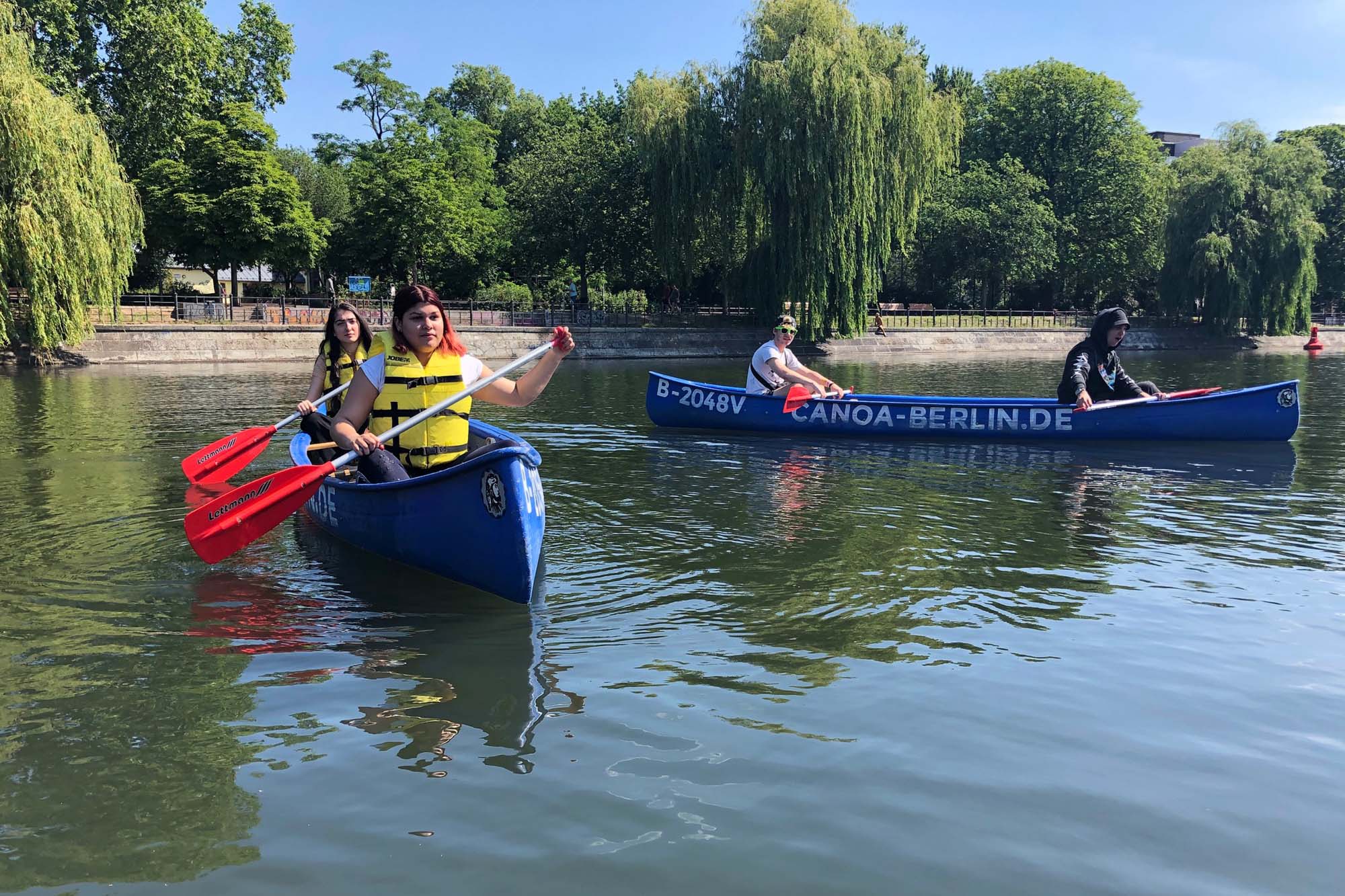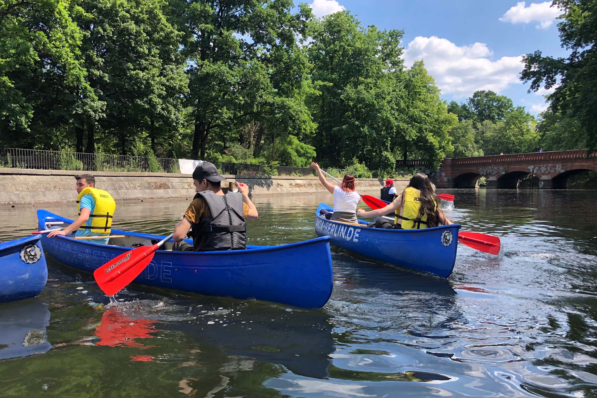 In den letzten Monaten waren Gruppenaktivitäten coronabedingt nicht möglich. Umso mehr bot sich dieser Ausflug kurz vor Schuljahresende an. Mit Kanus von Canoa Berlin samt Guide Florian fuhren wir bei bestem Wetter drei Stunden auf dem Landwehrkanal von der Prinzenstraße bis zum Club der Visionaere und zurück.
