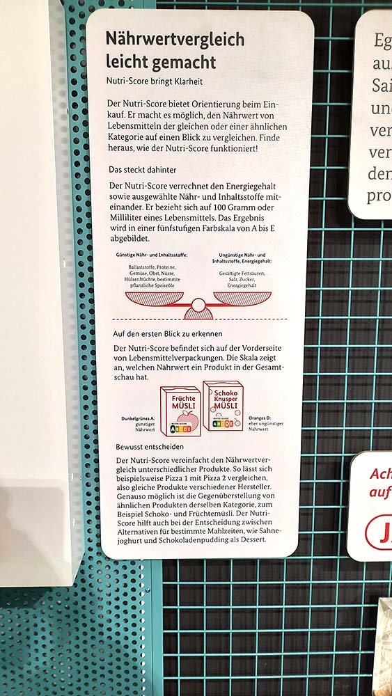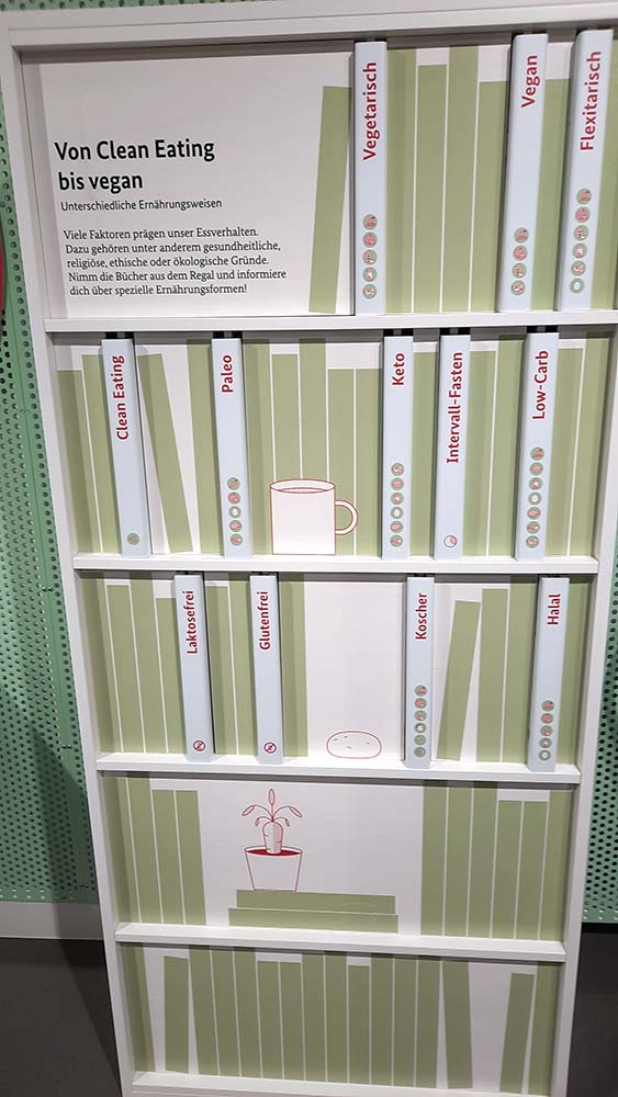 Durch die Anmeldung ist die Ausstellung nicht überlaufen, so dass man sich auch Zeit nehmen kann, um einzelne Inhalte genauer zu lesen. Es gab bei dem Besuch auch die Gelegenheit, Broschüren mitzunehmen, wie z. B. einen Obst-/Gemüsekalender für die Handtasche.