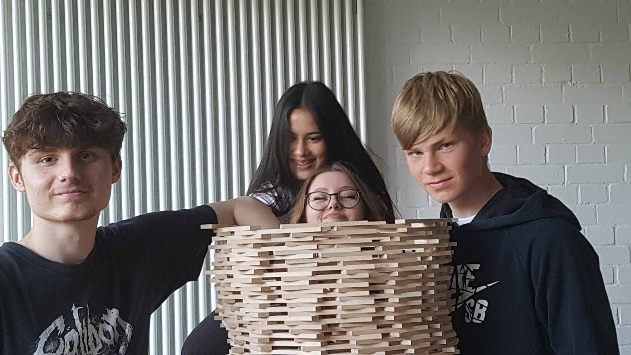 Gleich darauf begann dann die Rallye in zufälligen Gruppenkonstellationen. Wir durchliefen insgesamt fünf Stationen: den Turmbau, ein Klassenfoto planen, Trommeln, ein Standfoto inszenieren und den Eierfall.