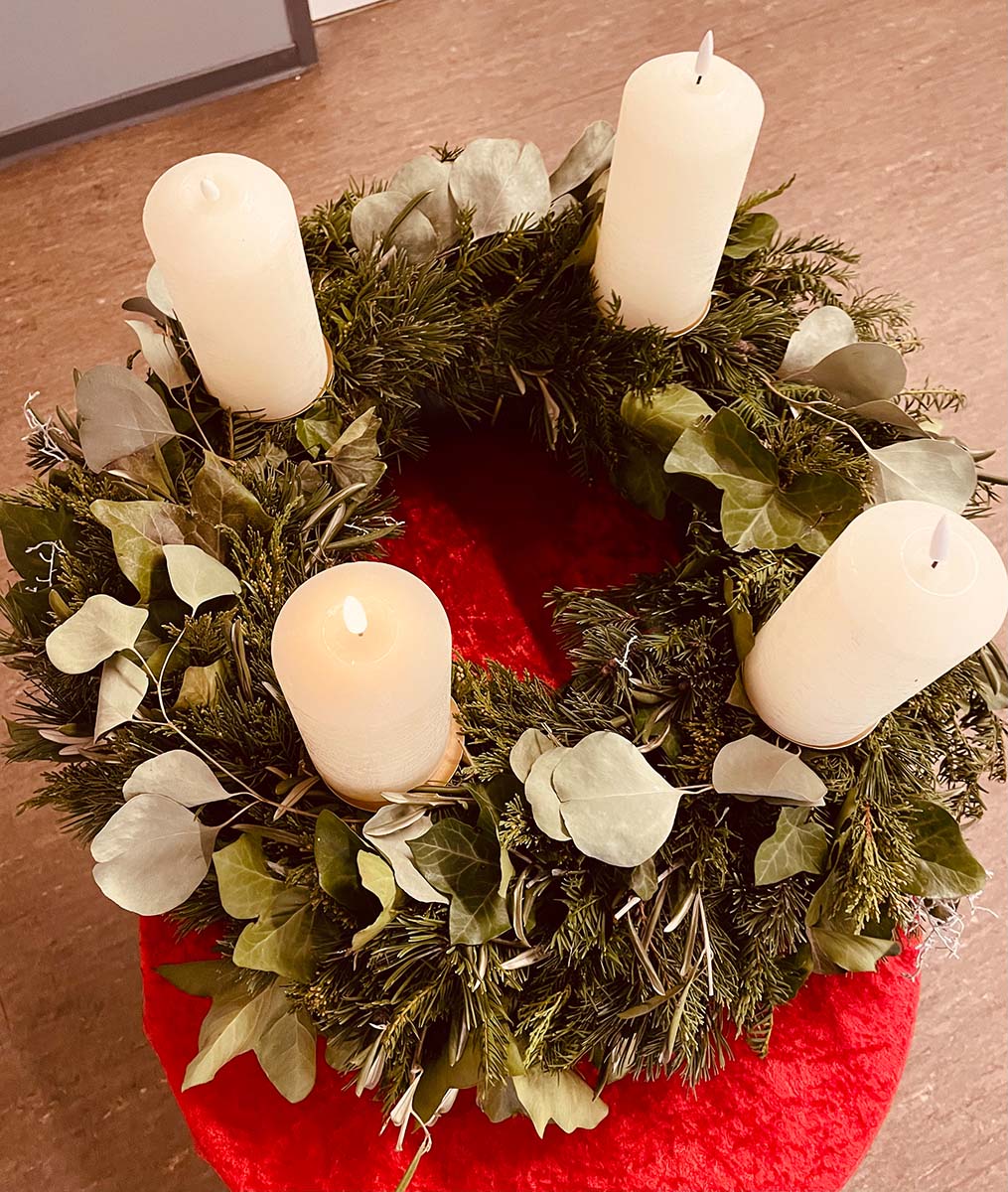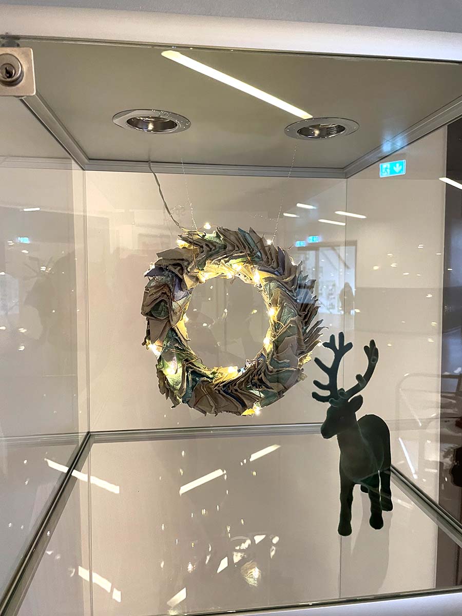 Auch in diesem Jahr wurde die Emil-Fischer-Schule von den Klassen der Berufsfachschule (AEV), Berufsschule (DHW01) und den Willkommensklassen (WKK) adventlich dekoriert. Upcycling und Nachhaltigkeit standen dabei im Vordergrund.