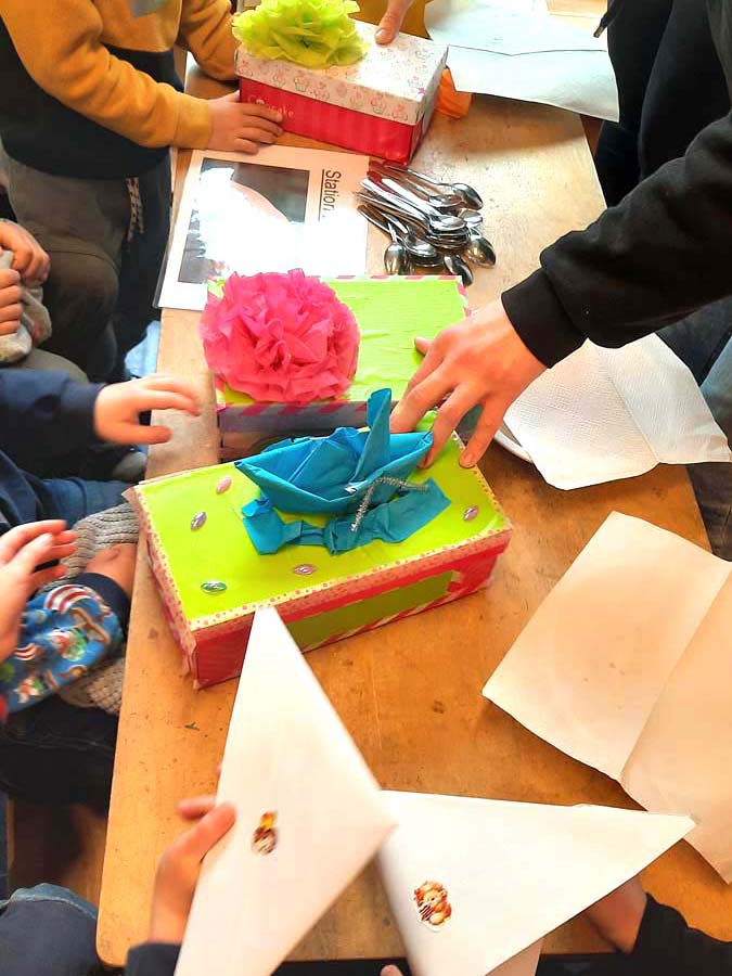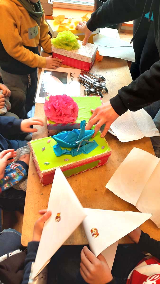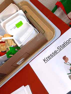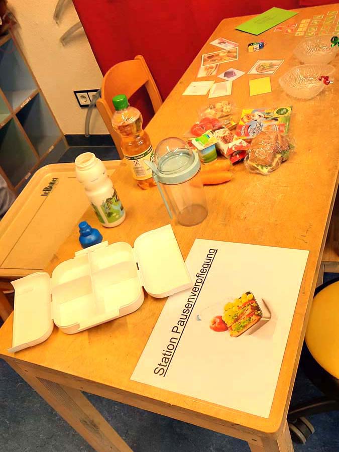 Die Kinder bekamen die Möglichkeit eine gesunde Brotbox zusammenzustellen. An der Candy-Station haben die Kinder die Zuckerwürfel in Lebensmitteln geschätzt. Und bei der letzten Station konnten sie Kresse aussäen. Alle Kinder bekamen zum Schluss eine „Experten-Urkunde“.