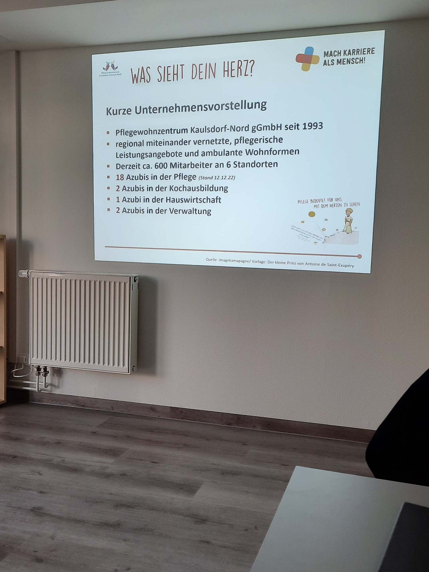 Im Ausbildungsbereich hörten wir von Herrn Brantzko einen interessanten Kurzvortrag über die Standorte sowie Ausbildungsmöglichkeiten im Pflegewohnzentrum. Er setzt sich auch aktiv für die Ausbildung im Bereich Pflege und der Akquise von Auszubildenden ein, indem er viel an den weiterführenden Schulen im Bezirk unterwegs ist.