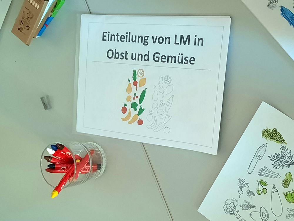 - Einteilung von LM in Obst und Gemüse