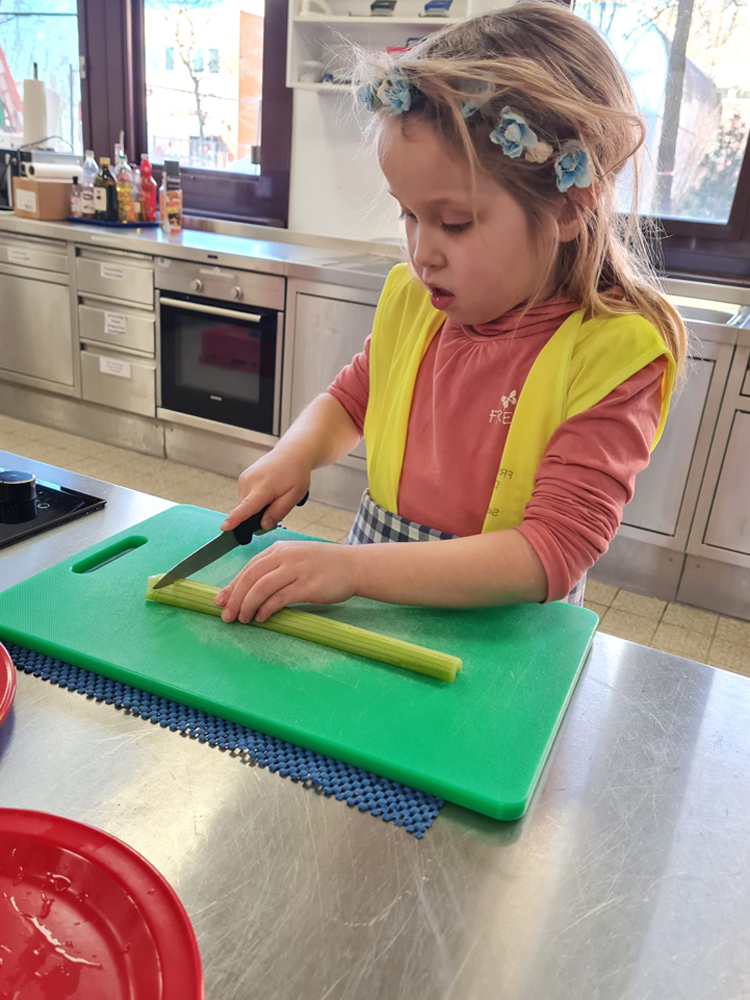 In der ersten Station konnten die Kinder Rohkost und Dipp herstellen, was sie im Anschluss vernaschen durften.