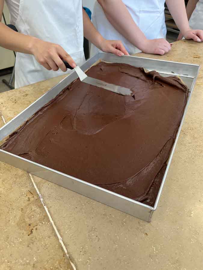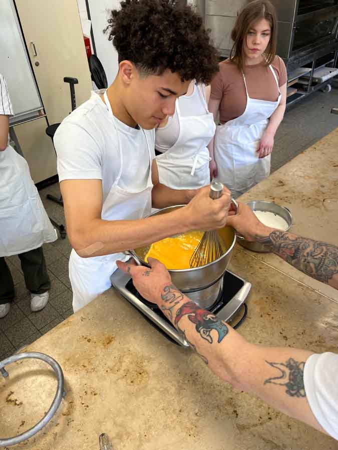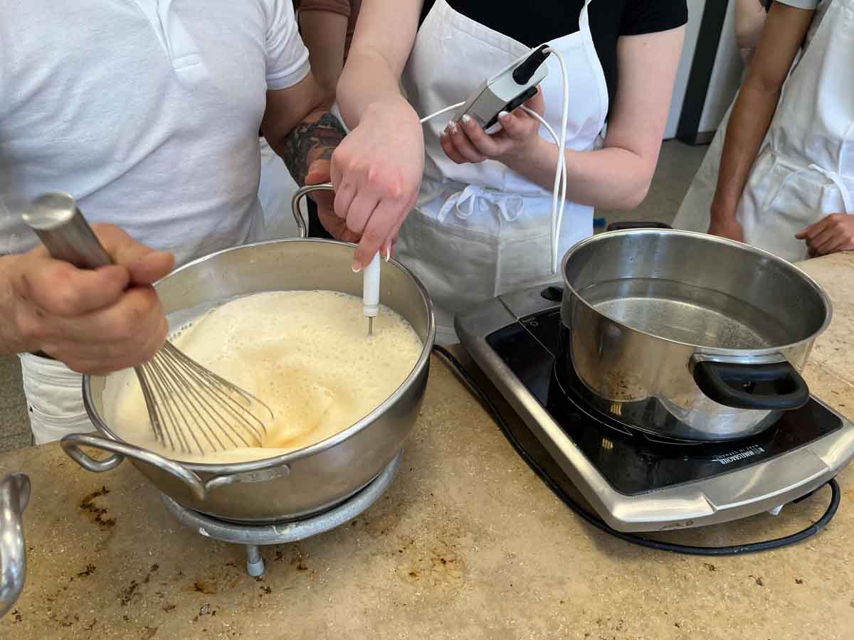 Unter der fachkundigen Anleitung von zwei Auszubildenden aus dem Bildungsgang „Lebensmitteltechnische Assistenten“ haben die Schülerinnen und Schüler Whoopie Pies hergestellt. Hierzu wurde eine gebackene Schokoladenmasse mit Vanille-Eis gefüllt und abschließend sensorisch bewertet.