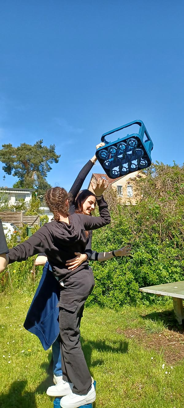 Der Besuch des Vier-Felder-Hofes war kurz und führte auf dem Rückweg in das Eis-Café, das viele Eissorten zur Auswahl hatte und uns an dem heißen Tag mit erfrischender Fruchtkühle belohnte. Die Kanutour auf dem Wannsee war für einige eine gelungene Unternehmung und forderte die Koordinationsfähigkeit heraus; die Wasservögel und die Rückstrahlung der tiefblauen Farbe des Himmels im Wasser beim Anbrechen der Dämmerung beeindruckten uns sehr.