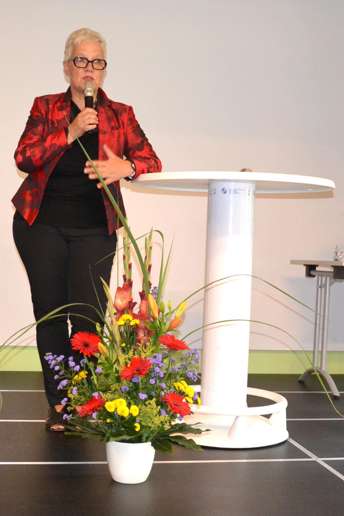 Die Abteilungsleiterin, Frau Dr. Schwalb, leitete mit einer kurzen Rede ein. Sie erwähnte die Vielfalt der Themen, mit denen sich die Prüflinge auskennen mussten, die zahlreichen Prüfungen und nannte Beispiele, bevor sie die Abiturientinnen und Abiturienten beglückwünschte. Neben den freundlichen Worten gab es auch Präsente, Blumen, Kugelschreiber und für die Besten Bücher.