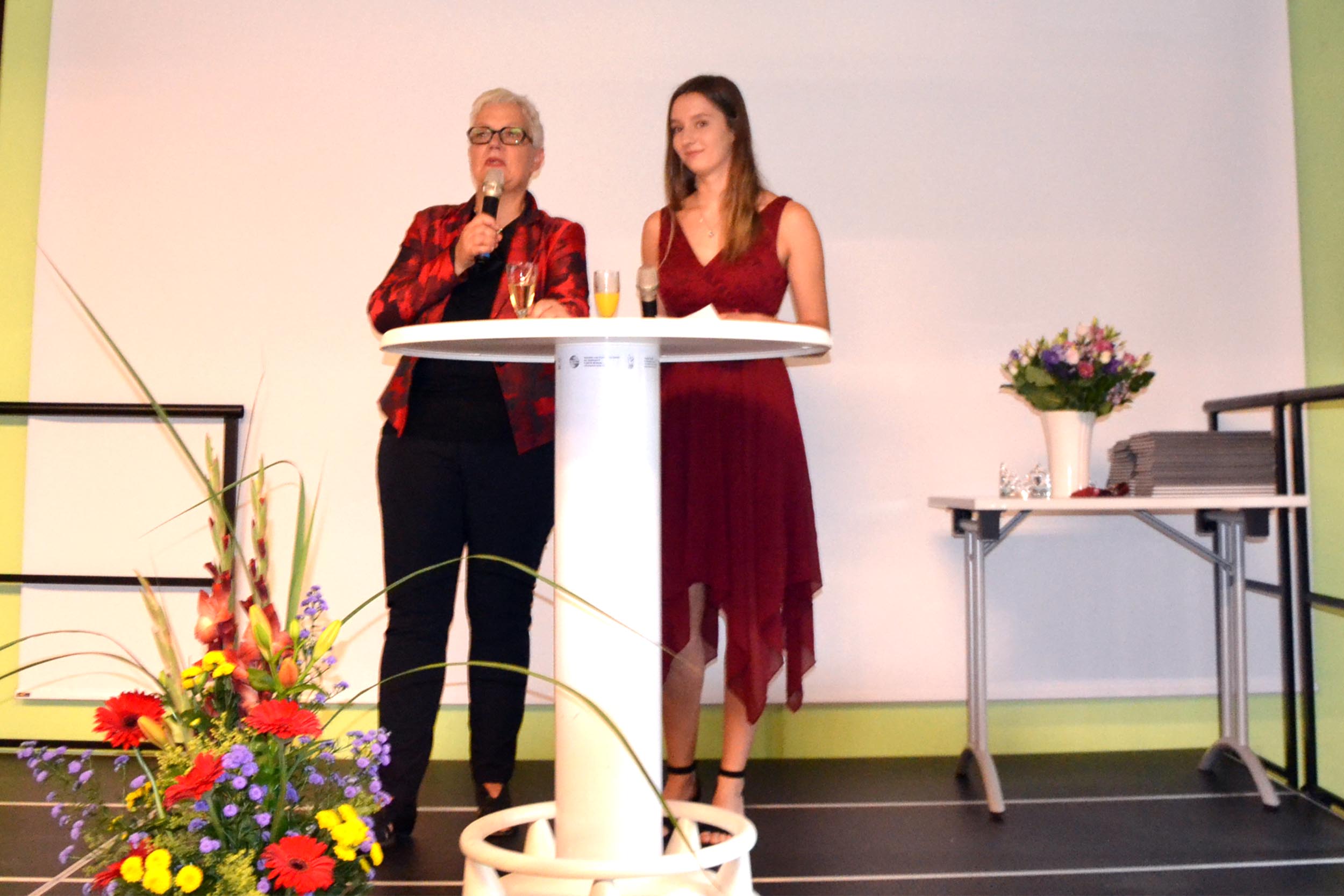 Zwei Abiturientinnen – Florence und Hanna – berichteten aus ihren Zeiten an unserem Oberstufenzentrum. Es war ein amüsantes Statement, bei dem es vor allem darum ging, zu verdeutlichen, dass der einzelne Erfolg vom Engagement aller abhängt, aber vor allem vom individuellen Willen.