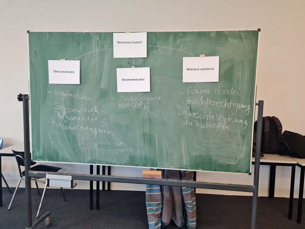 Um den Workshop zu starten, wurde der Begriff Nachhaltigkeit definiert. Die drei Säulen der Nachhaltigkeit bestehen aus der Ökologie, der Ökonomie und der Sozialverträglichkeit.