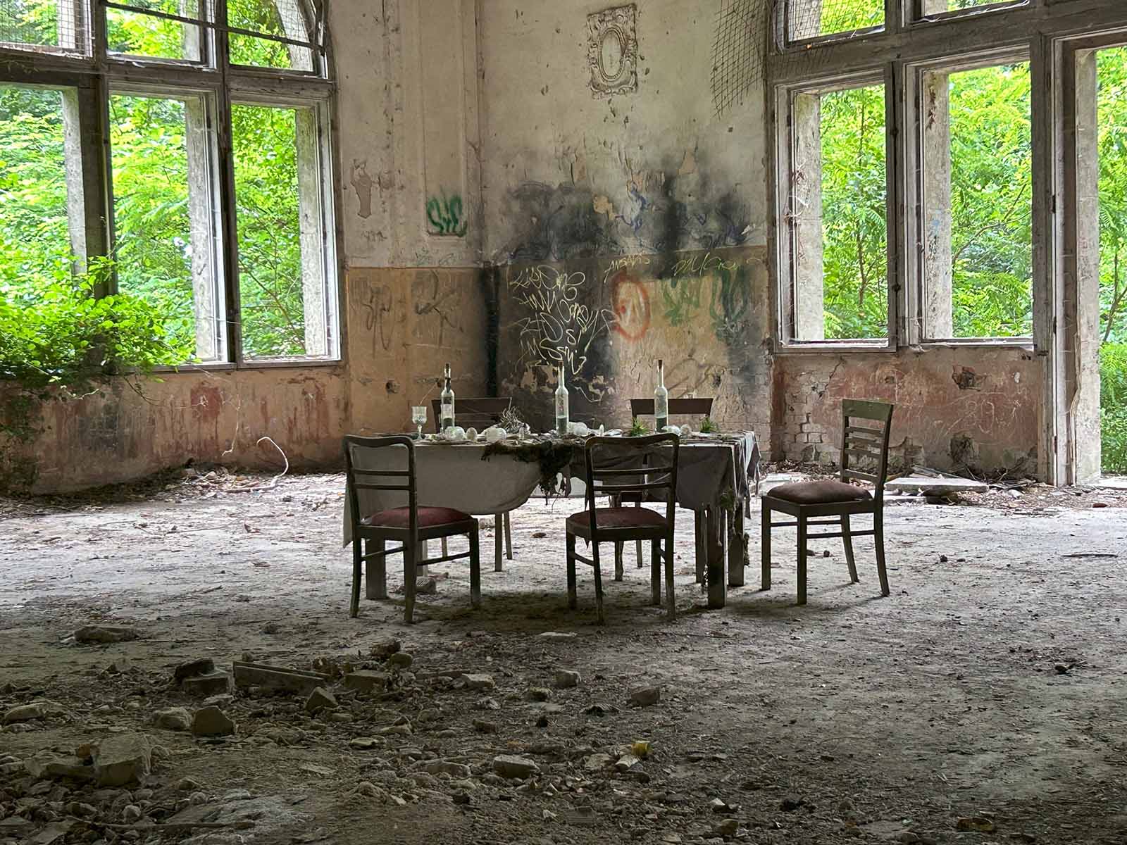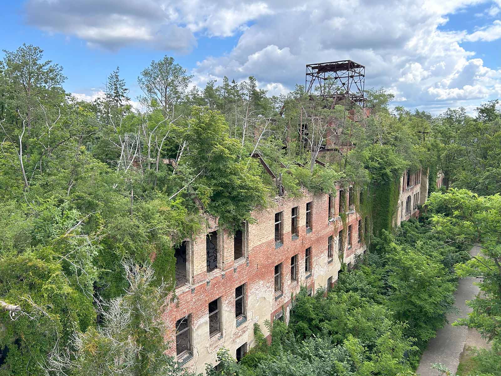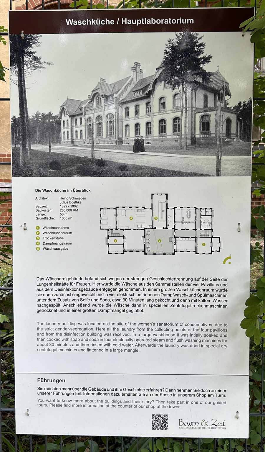 Von dort aus konnten wir die geschichtsträchtigen Gebäude der ehemaligen Lungenheilanstalt und die Natur, die sich ihren Platz zurückerobert hat, eindrucksvoll betrachten. Ebenso interessant waren die zahlreichen Info-Tafeln, die passend zum (zukünftigen) Berufsbild der Schülerinnen spannende Einblicke in die damalige Nutzung der Gebäude, z. B. Wäscherei und Spülküche, gewährte.