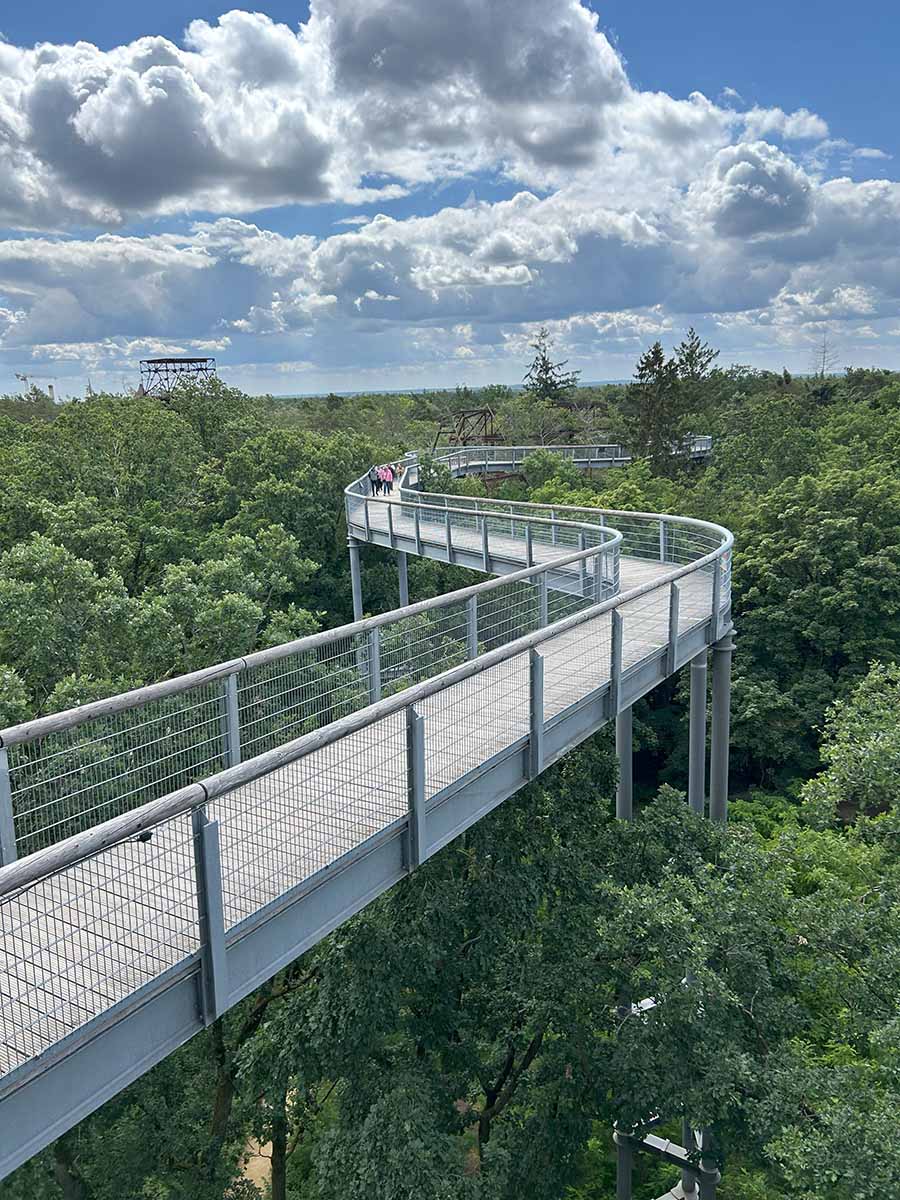 ...in den Baumkronenpfad von Beelitz-Heilstätten. Am 12.06.2024 begaben sich die fünf Schülerinnen der AEV21, die drei Lehrerinnen Frau Schuhmann, Frau Reichel und Frau Groß sowie die Sozialarbeiterin Frau Müller in luftige Höhe von 14 bis 20 Metern.