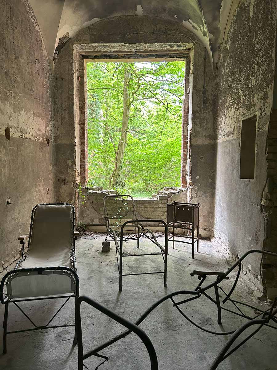 Den Abschluss bildete eine Führung durch das sogenannte "Alpenhaus". Dort erfuhren wir viel vom ehemaligen Klinikalltag, Lebensbedingungen vor gut 100 Jahren und vor allem, dass die Klinik fast vollständig autark lief - von der Wäsche und der Küche über den Gemüseanbau bis hin zur eigenen Schweinezucht. Selbst die Transport-Wagen liefen über eine Art Elektro-Antrieb, um die Atemwege der Patientinnen und Patienten zu schonen, die hauptsächlich kamen, um ihre Tuberkulose auszukurieren. Auch die Erkenntnisse zu bestimmten Hygienevorkehrungen waren selbst damals schon sehr fortschrittlich.