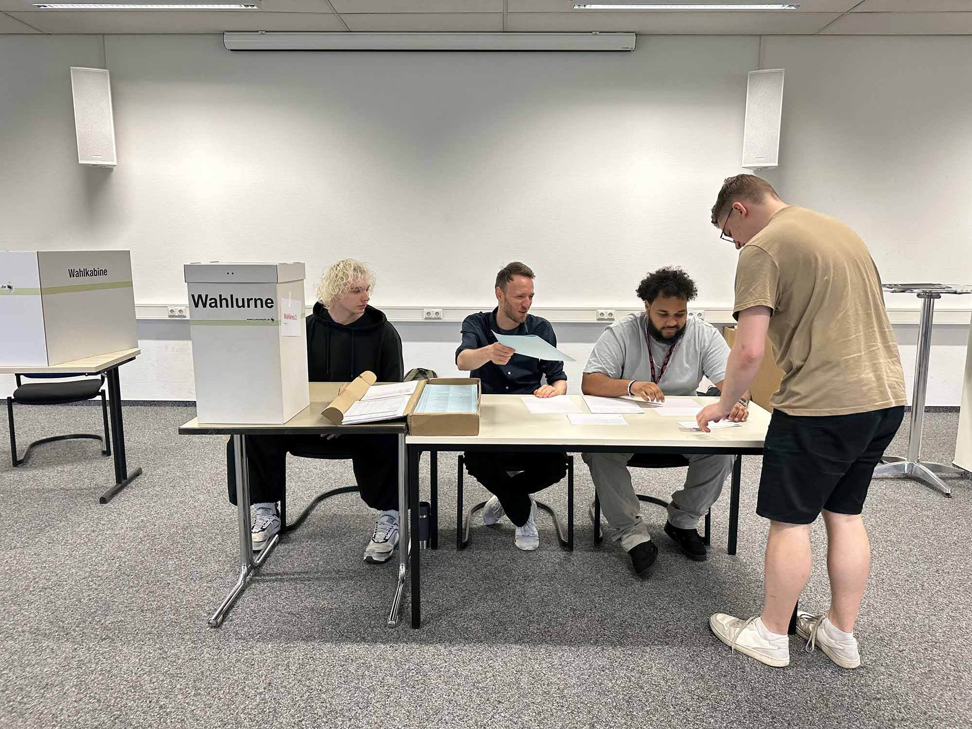 Mit einer Herabsenkung des Wahlalters auf 16 Jahre durfte ein Großteil unserer Schülerinnen und Schüler bei den gestrigen Europawahlen zum ersten Mal offiziell wählen. Vor diesem Hintergrund bot die Juniorwahl unseren Schüler/-innen vorab die Gelegenheit, Demokratie und politische Teilhabe hautnah zu erleben.