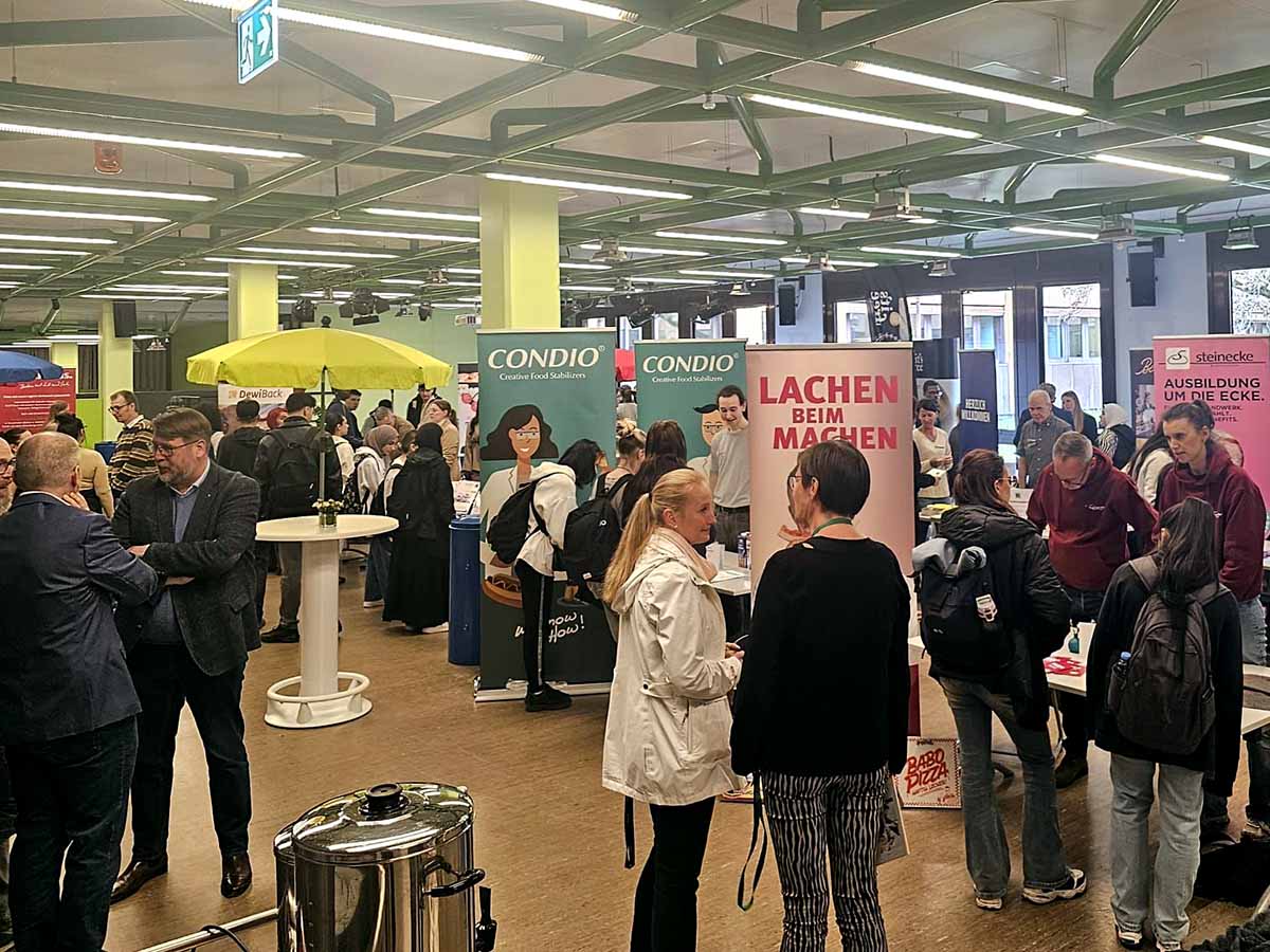 Eine abgeschlossene Berufsausbildung ist für junge Menschen die Basis für einen erfolgreichen Start in die berufliche Zukunft. Dem Organisationsteam der 1. Ausbildungsmesse an der Emil-Fischer-Schule war es daher ein großes Anliegen, den Schülerinnen und Schülern unserer vollschulischen Bildungsgänge die Ausbildungsmöglichkeiten und Perspektiven in der Lebensmittelbranche aufzuzeigen.