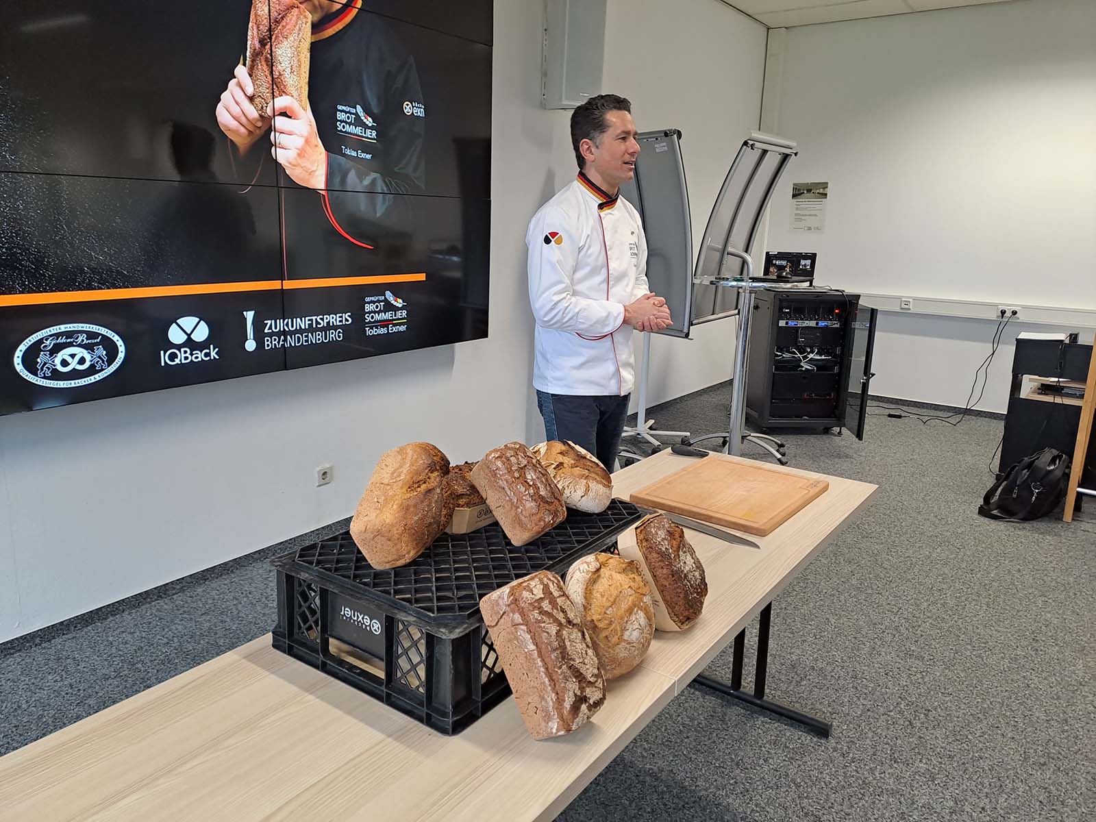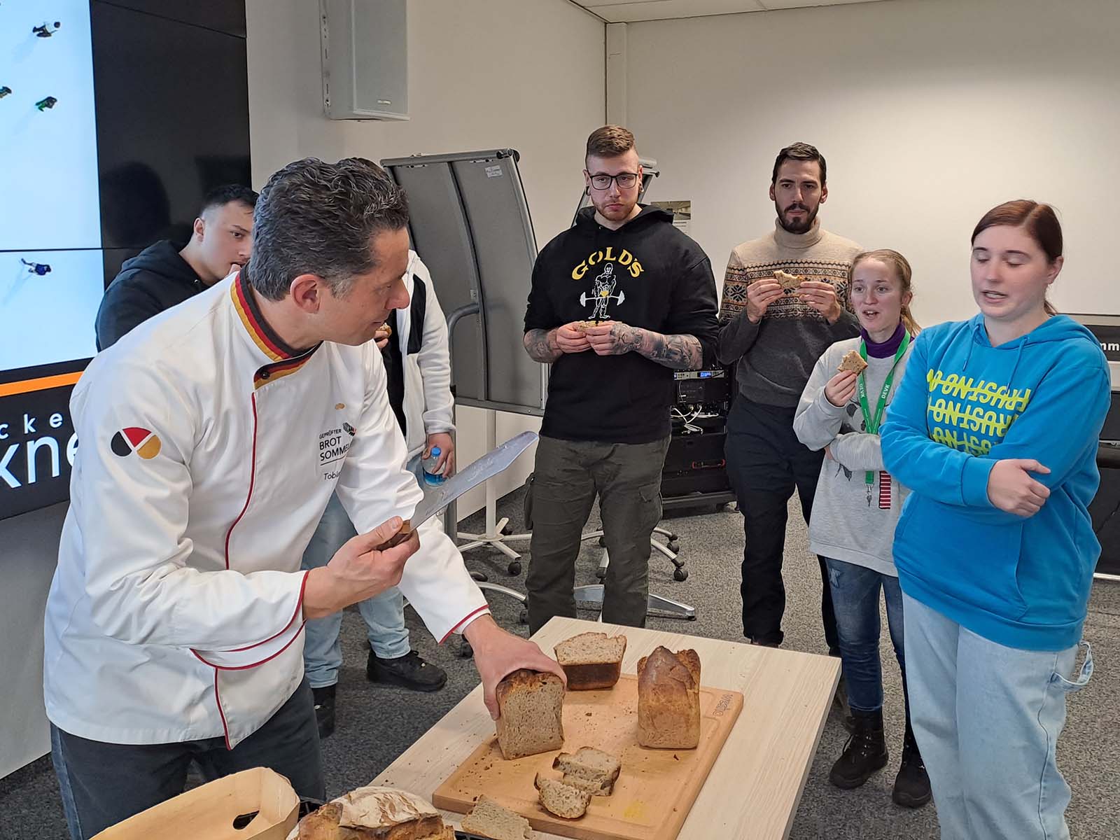 Der Brotsommelier Tobias Exner hat unserem Nachwuchs (Bäcker/-innen und Fachverkäufer/-innen) mit der Verkostung von Produkten aus eigener Herstellung die Arbeitsweise eines Brotsommeliers gezeigt.