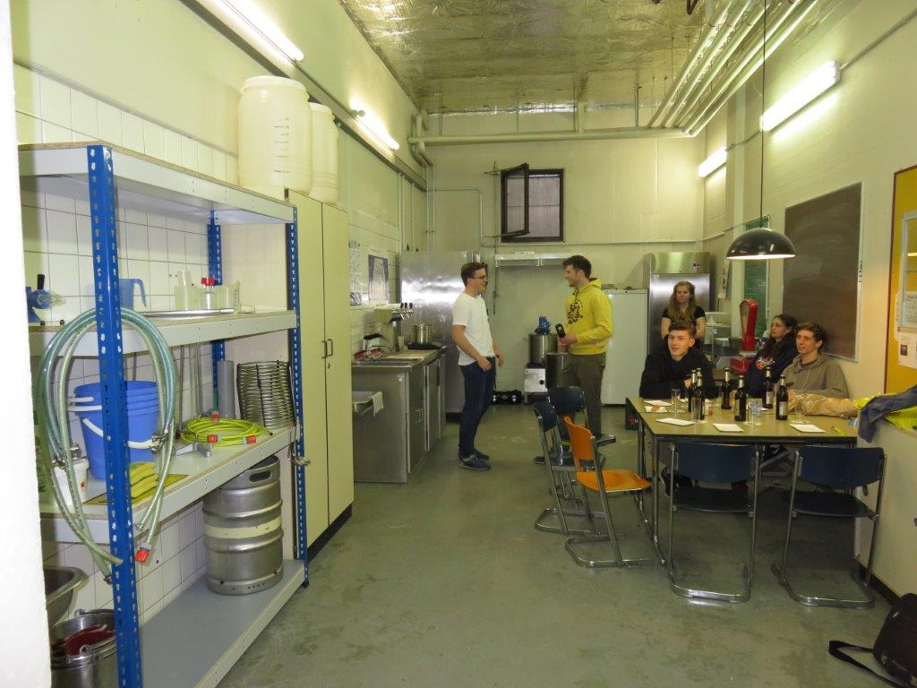 Viele tatkräftige Hände des 2. Ausbildungsjahres der Brauer/-innen sorgten unter fachkundiger Anleitung des Kollegen Sasse dafür, dass der Braukeller nun übersichtlicher geworden ist und darüber hinaus mehr Platz zur Verfügung steht. Die alten Regale und die Spülmaschine verschwanden, dafür wurden ein neues Regal installiert, ein weiterer Schrank aufgestellt und eine neue CO2-Leitung gelegt.