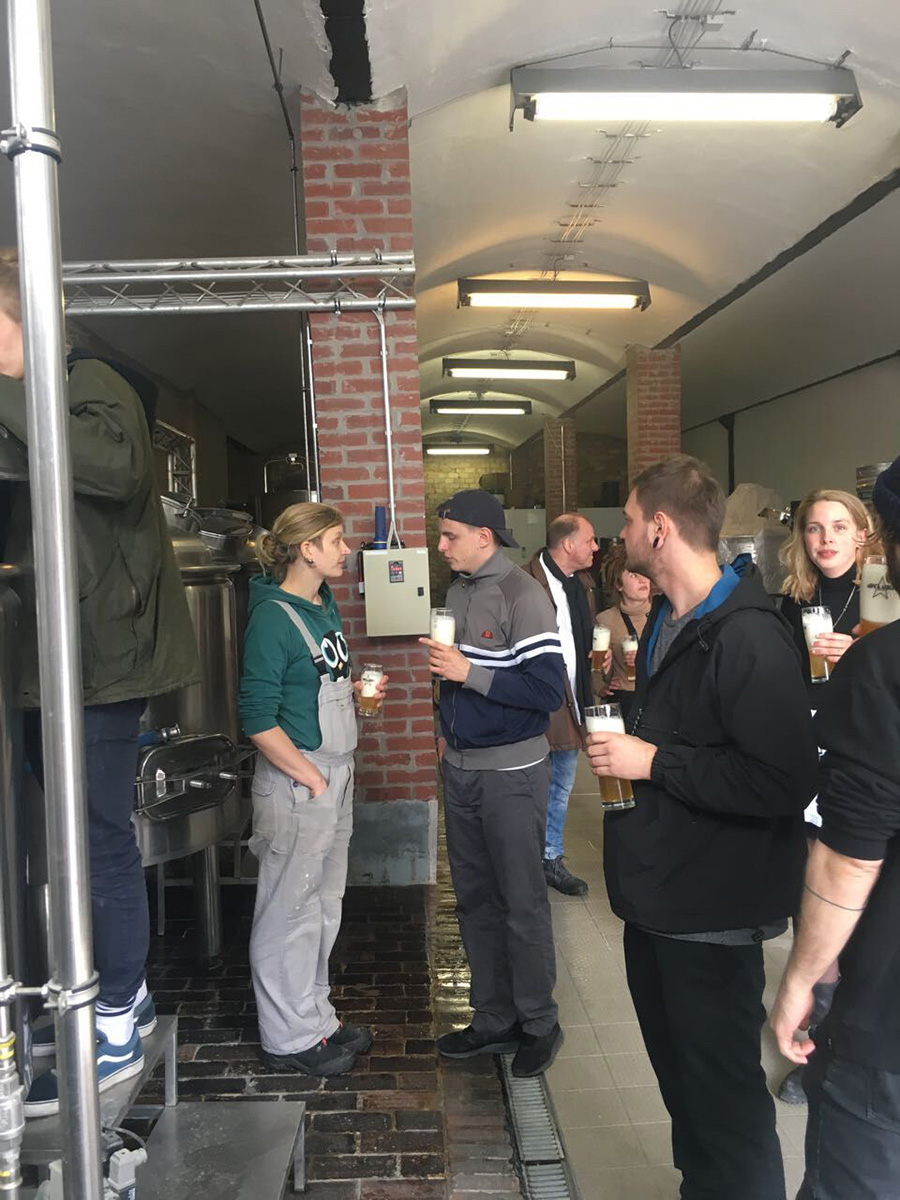 Anschließend ging es weiter nach Friedrichsfelde-Ost zur neuen Braustätte „Berliner Bierfabrik“. Den Abschluss des Tages bildete ein Besuch der Braustätte von „Hops & Barley“, wo wir von unserer ehemaligen Azubine Karin Naß herzlich empfangen wurden. Sie braut dort inzwischen hauptberuflich Bier für das „Hops & Barley“.