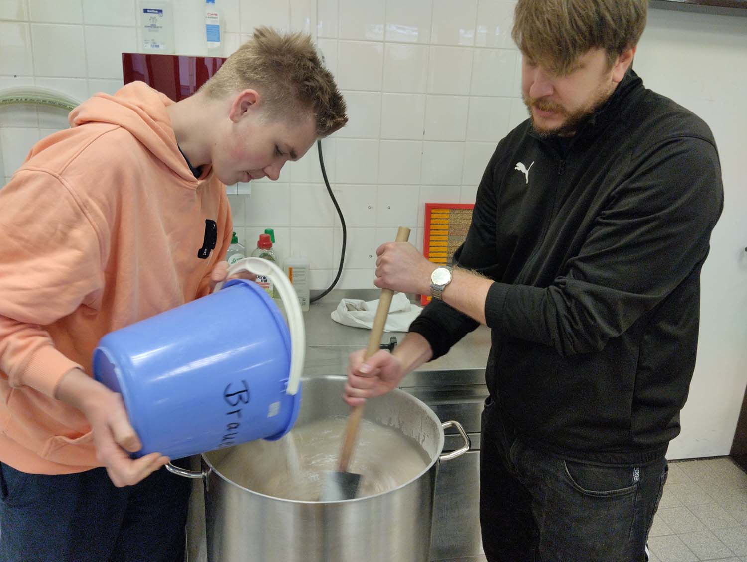 Verbunden mit viel Zuversicht schauen wir in die Zukunft: Tageslicht, endlich Wasserabläufe im Boden, Rauchabzüge an der Decke und Gasanschluss für einen Kocher. Außerdem ermöglichen die großzügigeren Räumlichkeiten den Unterricht in Teilgruppen in der Brauerei.