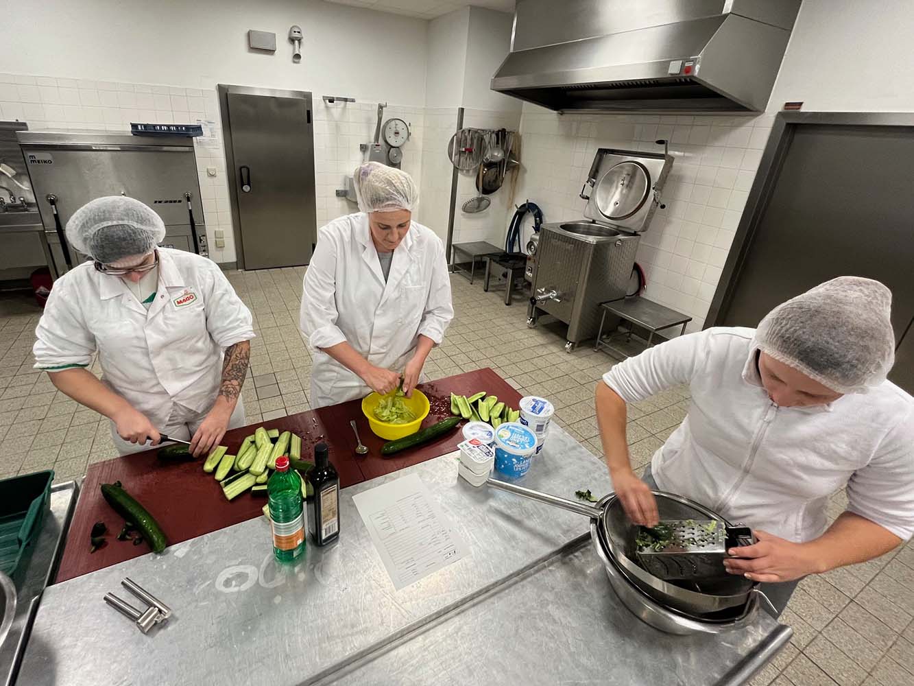 Dieses Jahr präsentierten die Fleischer und Fleischerinnen Käse-Jalapeño-Bratwurst, Geflügelbratwurst, Griechische Bratwurst und die bekannte Merguez. Die Resonanz war wieder einmal sehr groß, der diesjährige Renner war die Käse-Jalapeño-Bratwurst, gefolgt von der Merguez mit Tzatziki. Die zugehörigen Brötchen wurden von unserer hauseigenen Bäckerei zur Verfügung gestellt.