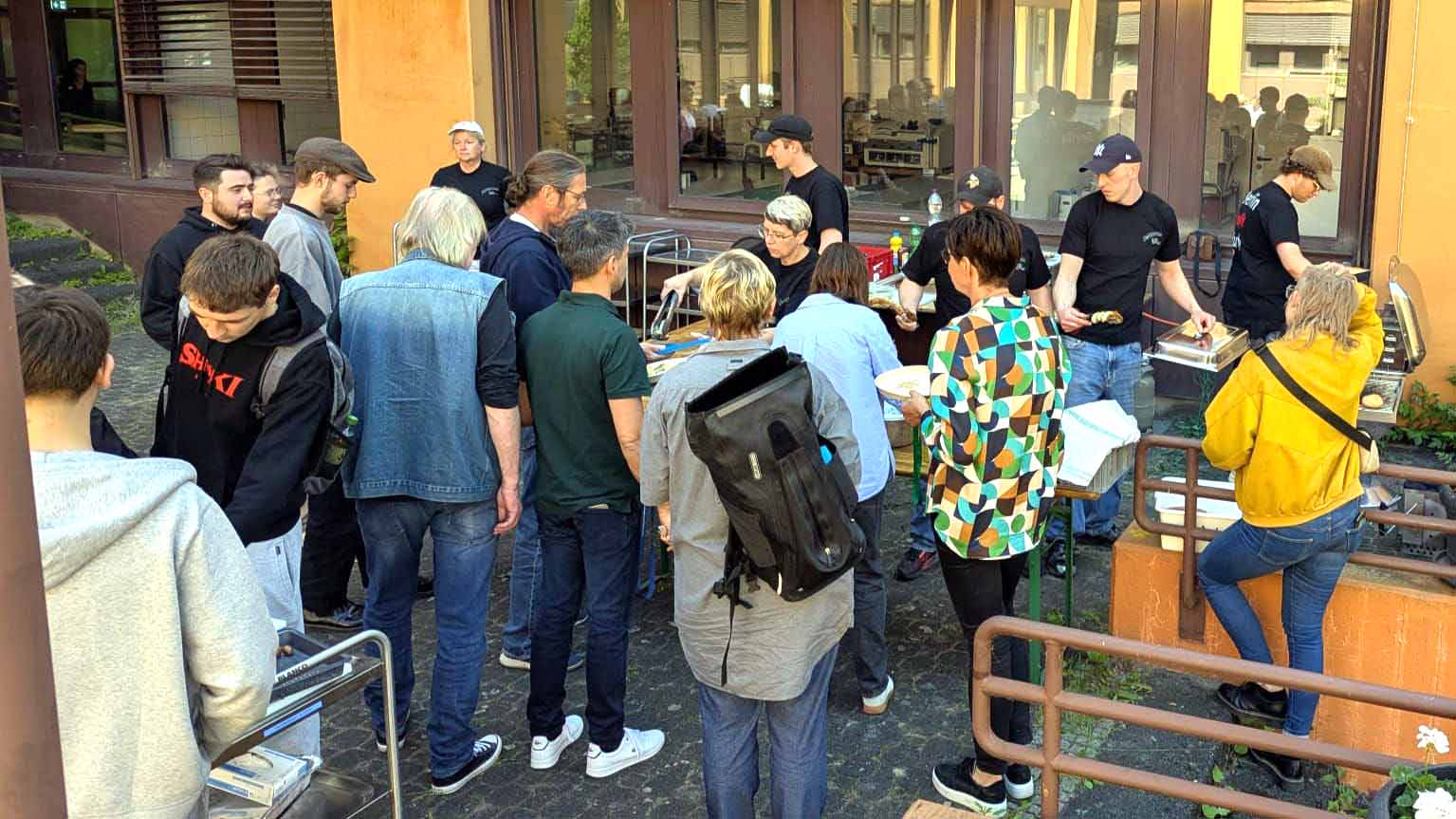 Mit viel Engagement und Teamarbeit wurde der Schulhof für das Event vorbereitet. Freddy, Jonas und Emil übernahmen den Grill, während Yannic an der Kasse für Ordnung sorgte. Nicole kümmerte sich um die freundliche Ausgabe der Bratwürste an die hungrigen Gäste.